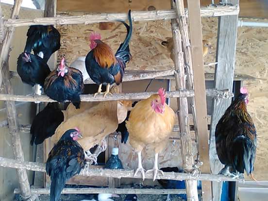 Chickens we have a silver sebright Roo, 2 buff orps, 2 dominiques, an ameraucana, and a silkie mix.