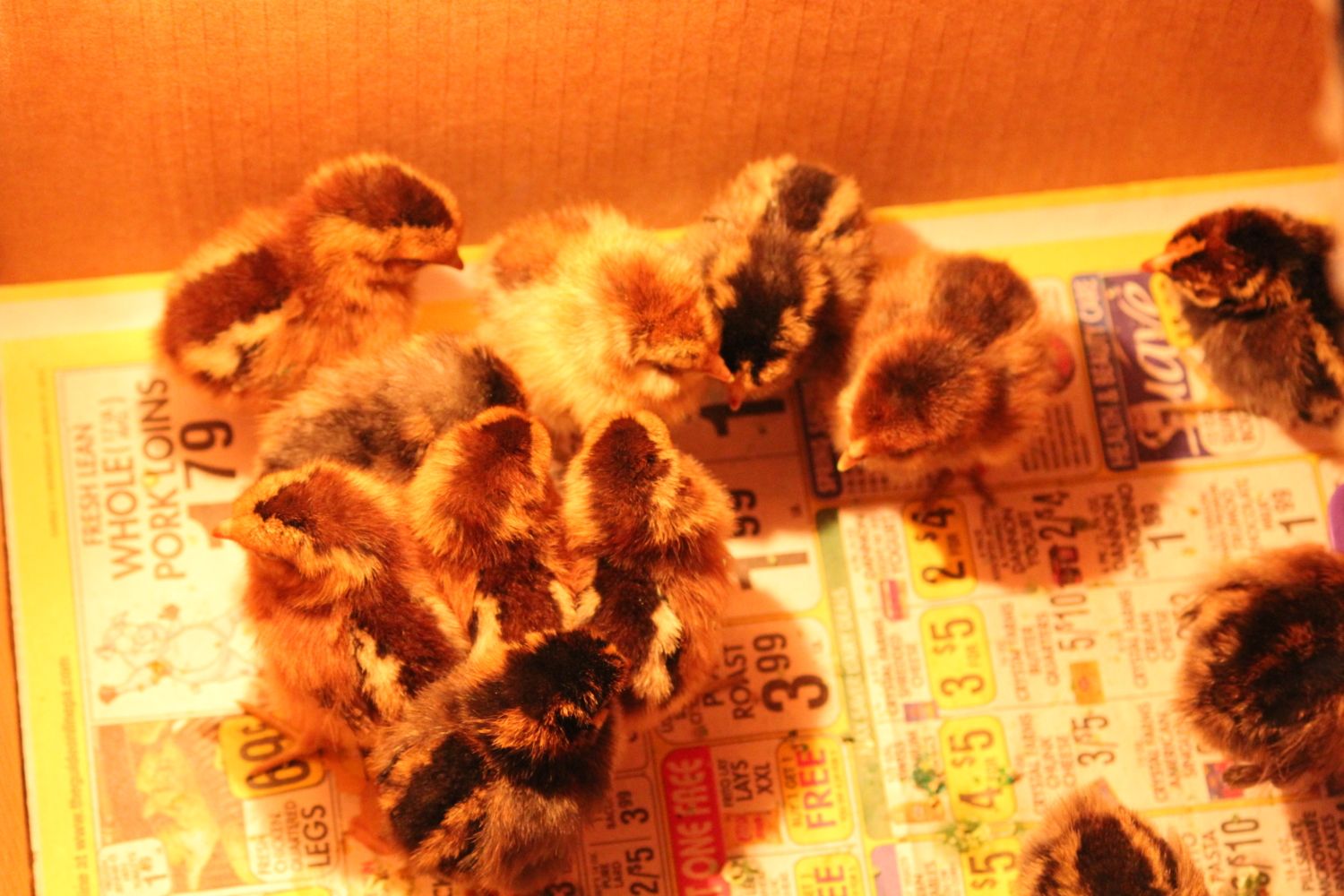 So I got my new babies in the mail today! We have 5 welsummers, 5 EE's, and 5 GLW, and 1 packing peanut! Not sure which chick is the extra. I'm also not sure which breeds are which! Any thoughts are welcome!!!