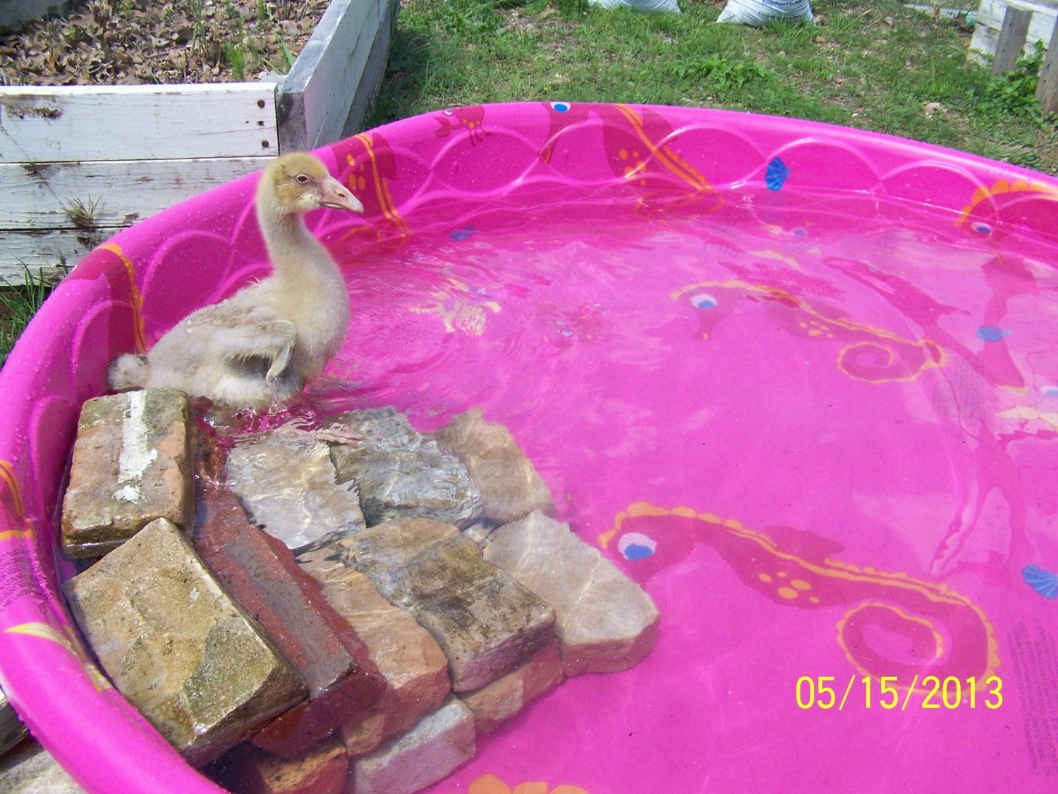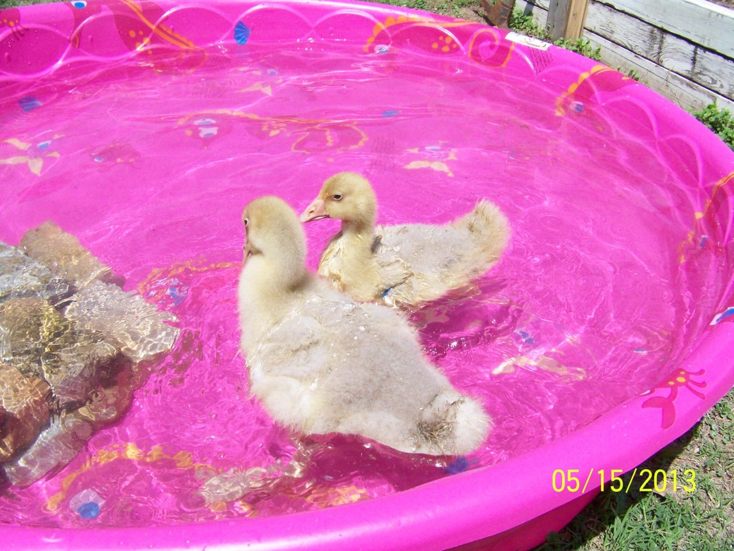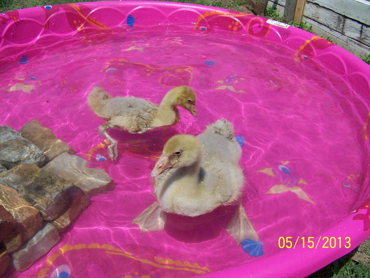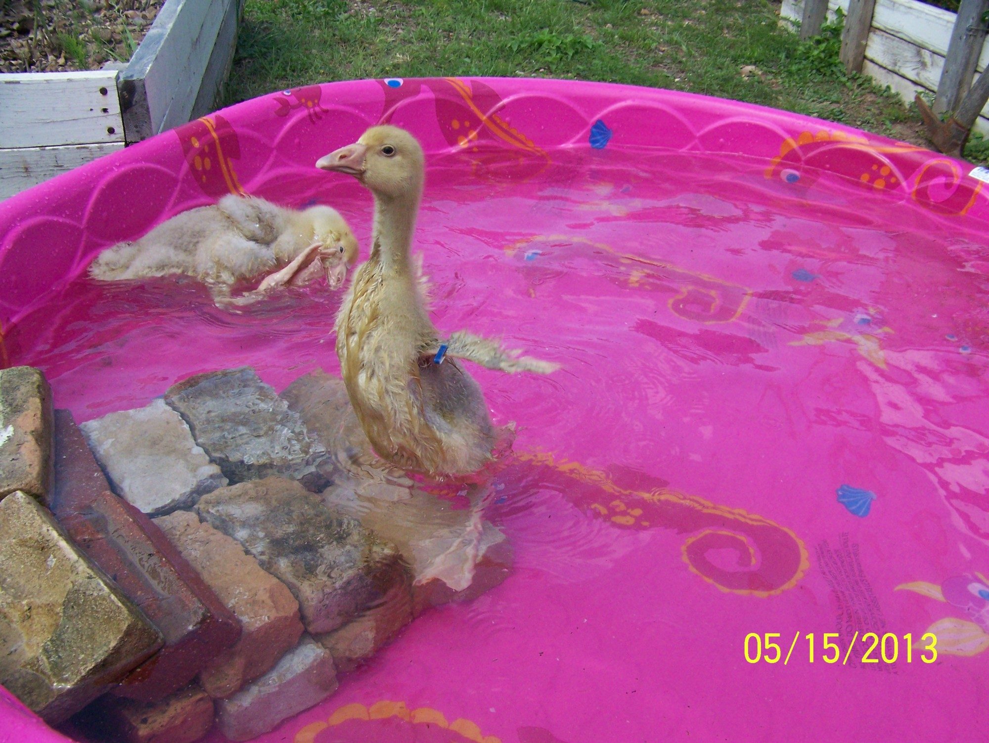 I love the pics. How cute are they. We are going to put in a little peanut water feature with a water fall in the back garden area for them to swim in. won't be too big but big enough to float around in when they are full grown. LoL It will provide nice fresh water too. Thanks for all the ideas. Its funny to see that your little guy stays close to you. Ours is the same way. Olive is much more adventurous than Brutus. We are babysitting our neighbors dog and they were pecking on her yesterday in the sun is was so cute.