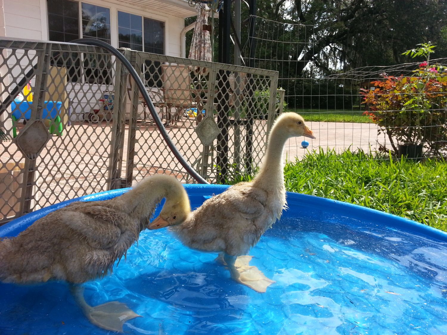 Your babies are so cut they look just like mine except my gander is bigger than my goose. Are yours getting feathers yet?