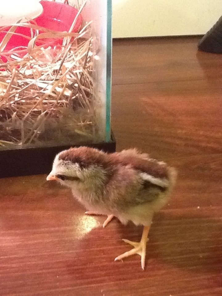 Warm paper towel, or if it is really stuck, dip the chick's butt in warm water. By the way, whoever said 1 is a Modern Game, I agree. Its legs look longer than the rest.cool! well I'm excited! thanks! yah that first one is just so different... its like reddish.