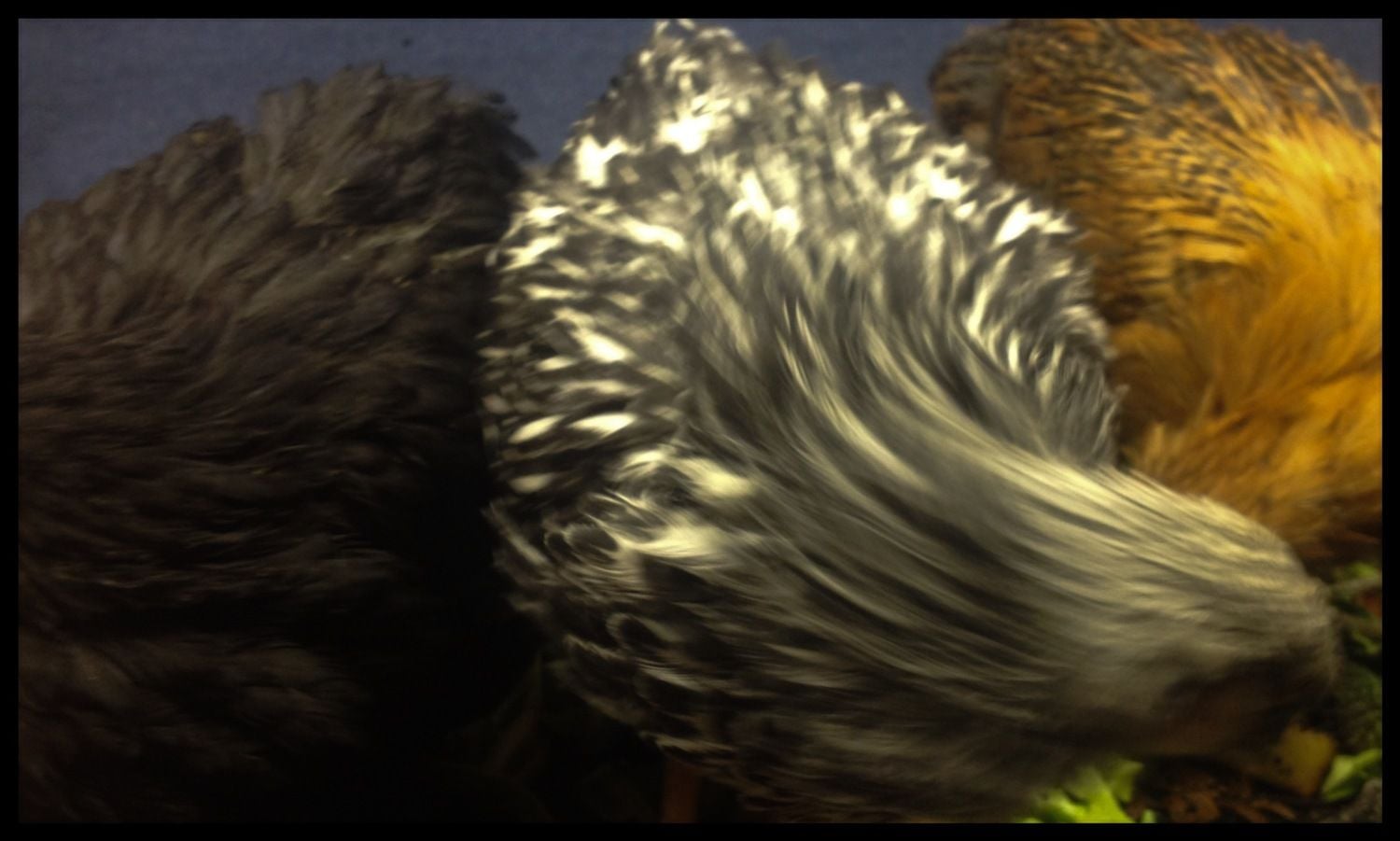 #2.5 Florence (Silver Laced Wyandotte) is smart and would easily fill Astrids #2 spot, but she doesn't really seem to care. She is always waiting at the door and hopping onto the door sill first. All of these three are always ready to perch on a hand or arm;