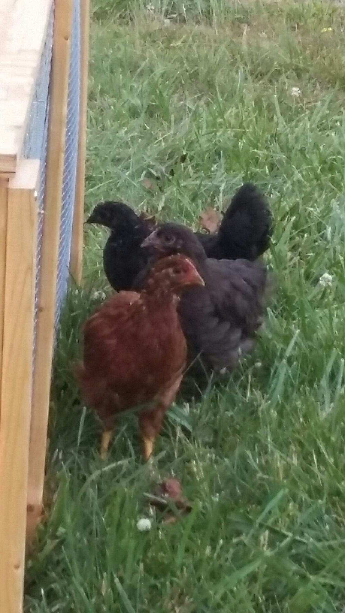 They were not sexed when I got them so I do not know what gender they are. I took some pics and hope that you might be able to help me. I have a RIR, an Australorp, a Chocolate Orpington, and a Cochin. I think the RIR is about 8 weeks and the rest are almost 7 weeks. Here they are!