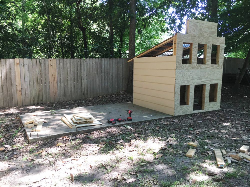 So here are progress pics. Slowly getting there. I hope it's done enough to be functional within the next 2 weeks so the girls can move in. He only has Sundays to work on it, so it makes progress take a while.