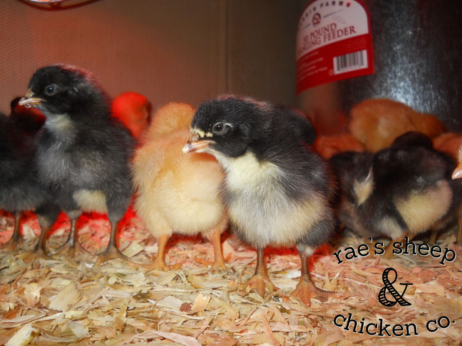 Baby playpen (roughly 2x3 -- maybe 3x4?) with cardboard layered with fine pine shavings. They have a 5 gallon waterer and a 30 lb hanging feeder (instead of a bunch of little ones; these were bought to last them until 17-20 weeks). They are fed Pen Pals medicated chick starter. They have two heat lamps as they seem to be a bit cold. I have cardboard wrapped around the brooder to keep out drafts. They are in my garage.