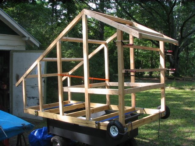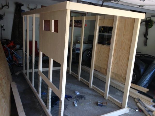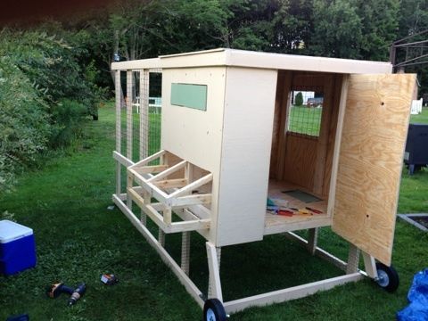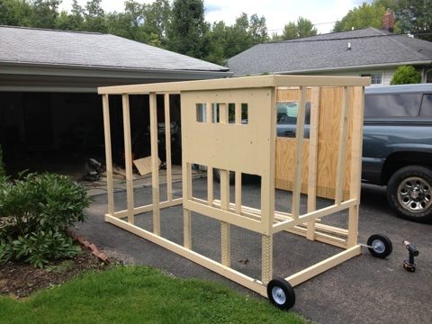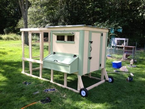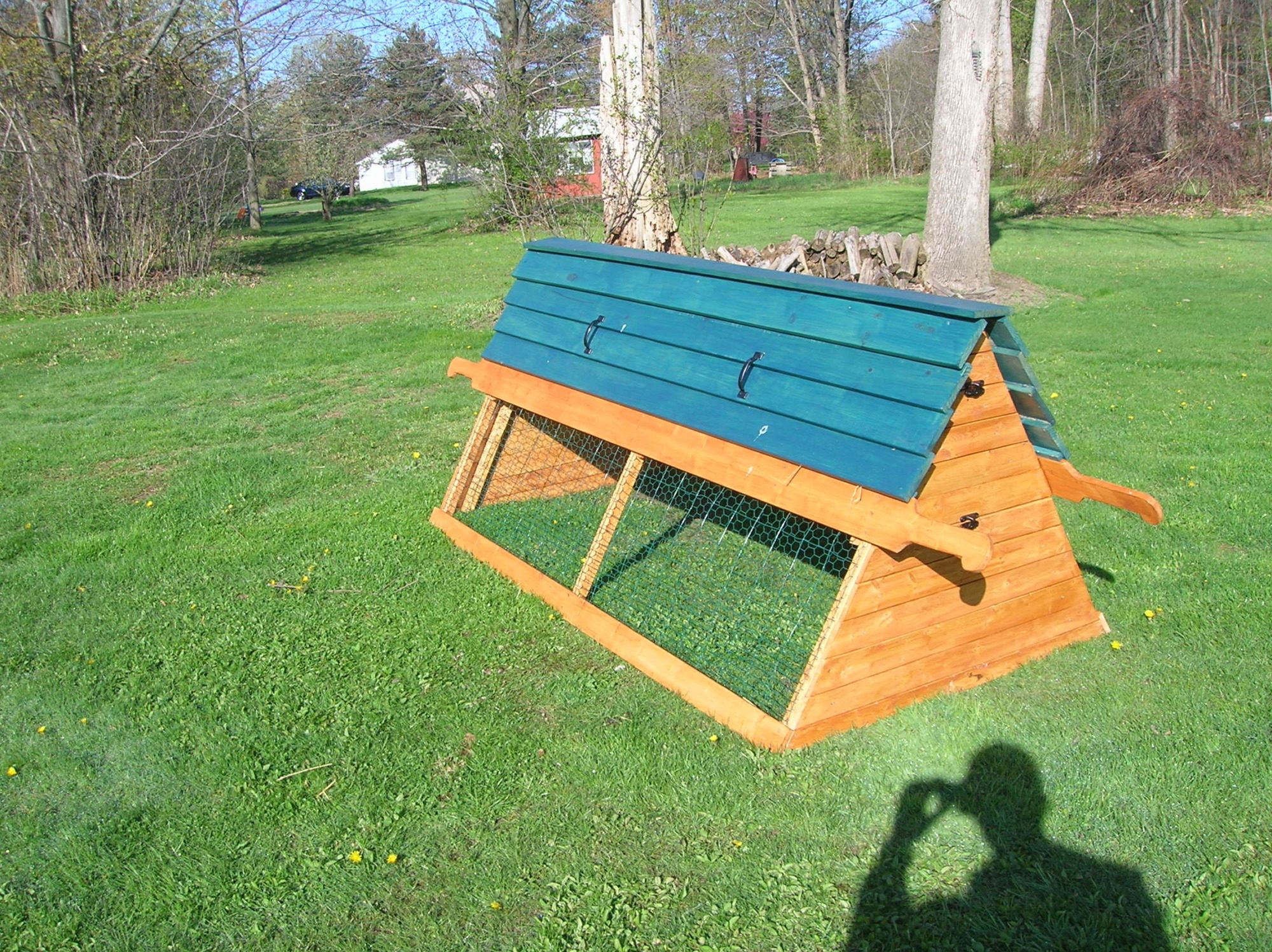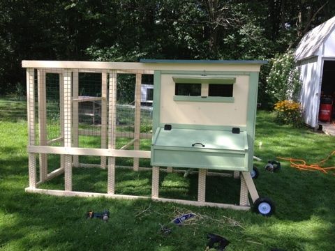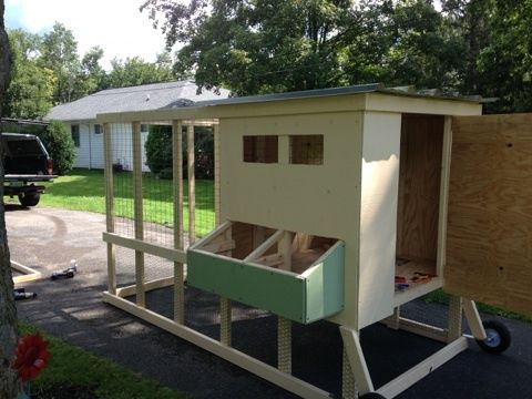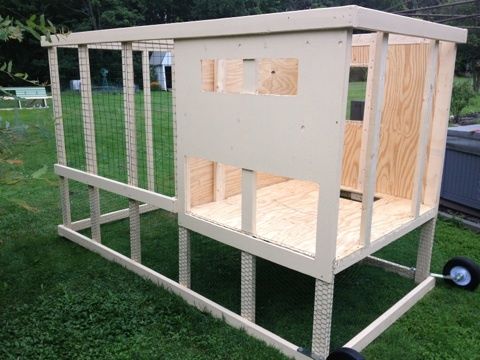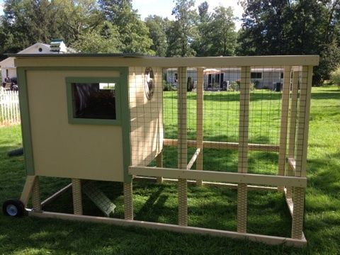 I've had fox trouble and cant let my birds free range anymore. Long time reader, first time poster. When my pregnant wife was guarding the birds in the backyard from a fox with a shotgun I knew it was time to build a new coop. Anyway, we are building a house and I wanted it to come with us, so I made it 10' long, just under 5' wide and 6 feet high so I can fit it on my trailer. Also, under the door on the run-end I but a large eye bolt so I can lift it with my atv winch or tractor bucket and move it/roll it.