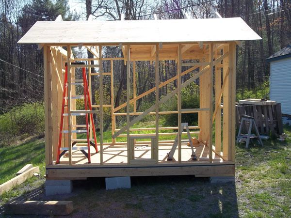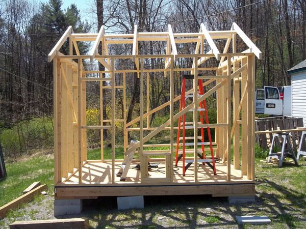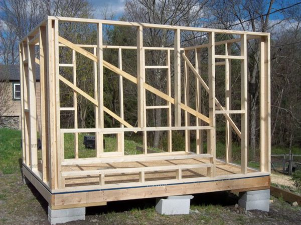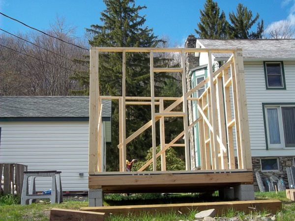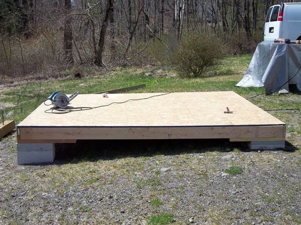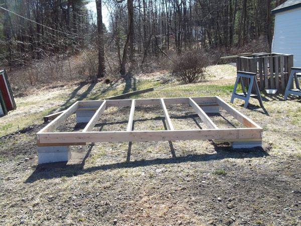 The base is built of 2x6s and pressure treated wood "plates" in each corner to rest on the concrete blocks.