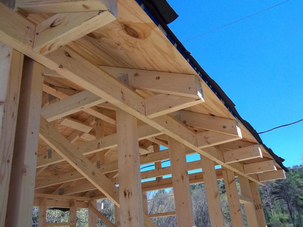 The floor is 5/8 OSB. (I thought that would be sufficient, and it is just for chickens, but with joists on 24" centers,