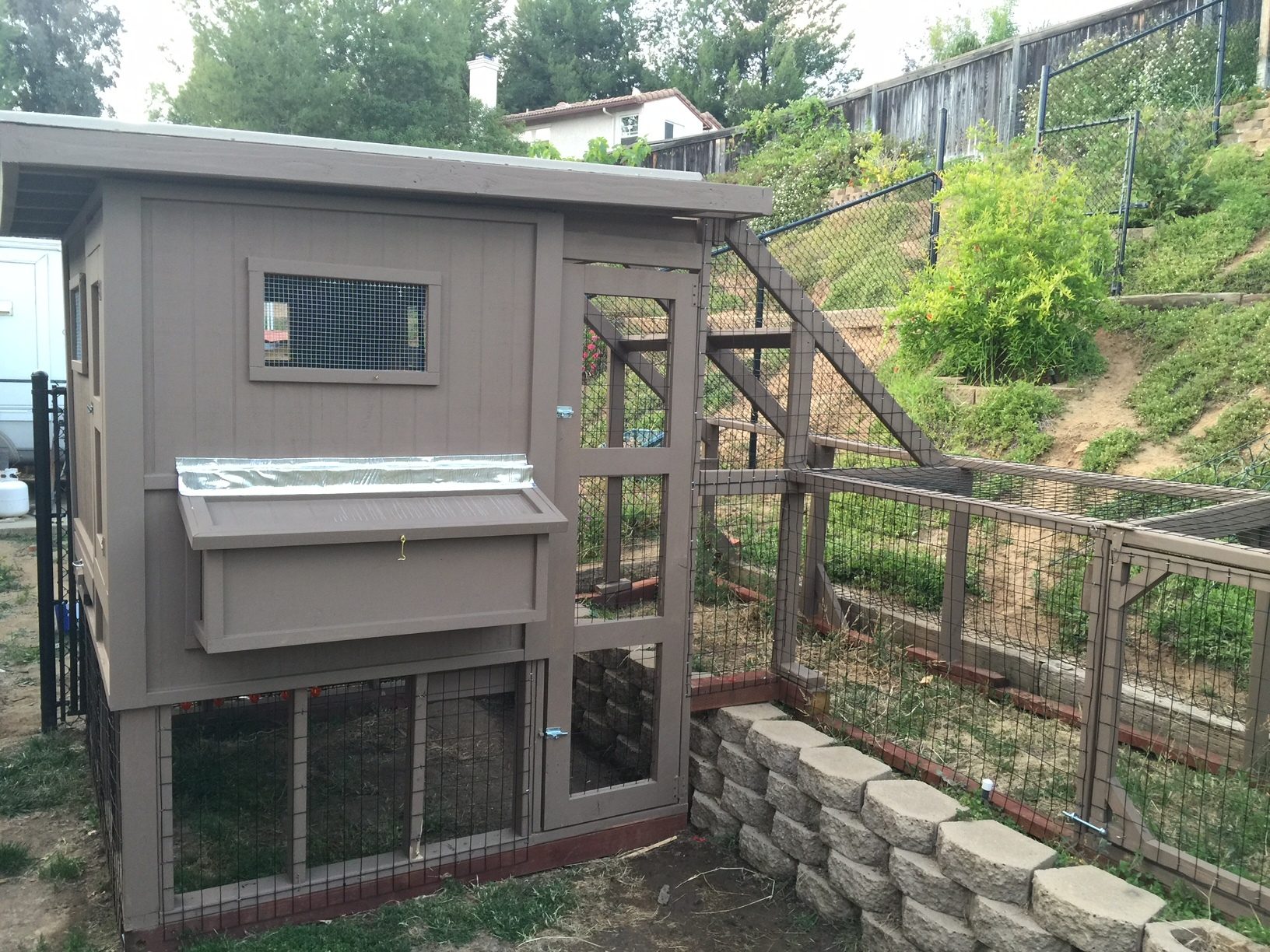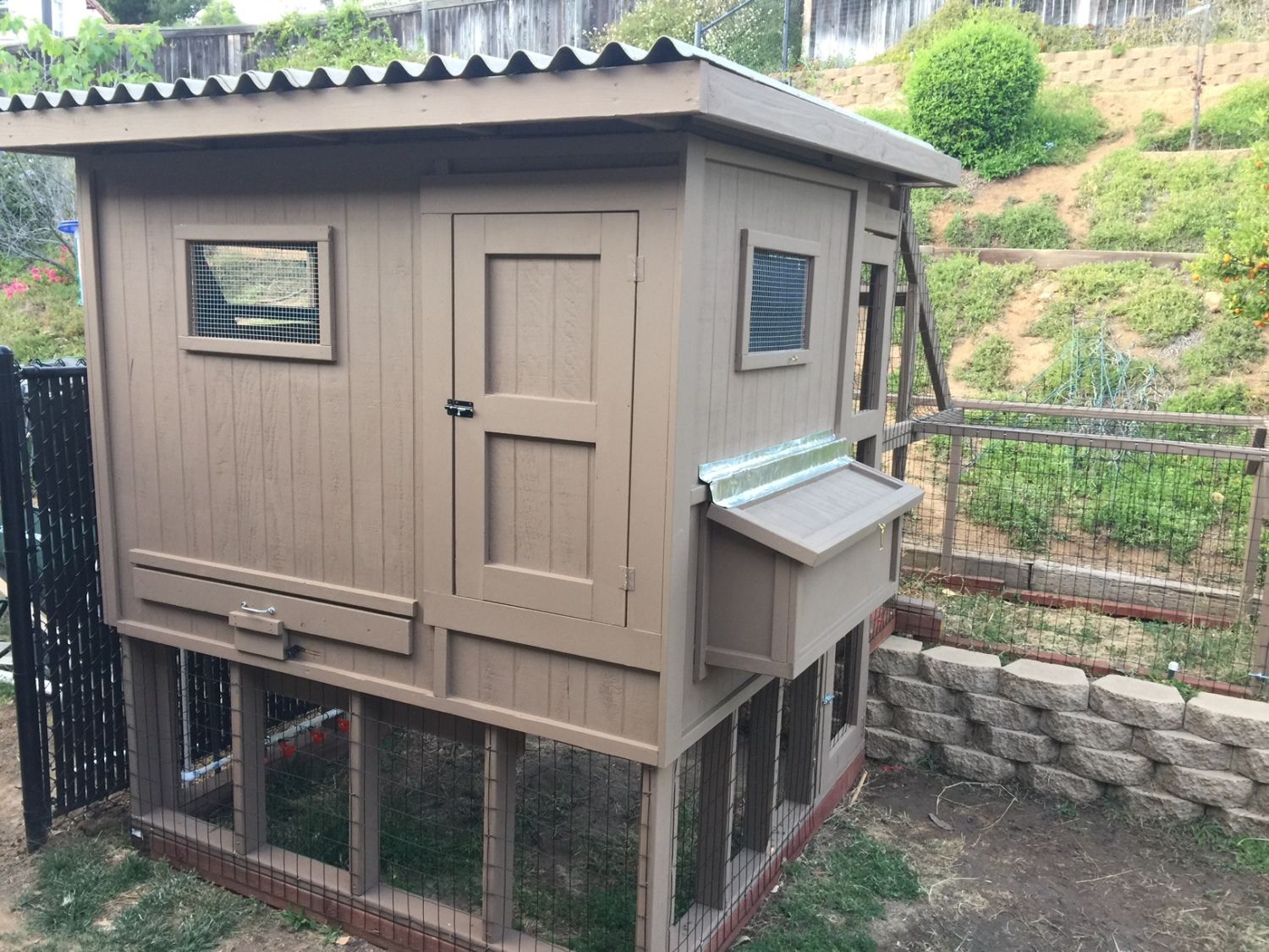 After several weeks work, the coop I am constructing for my wife is nearing completion. The facility will be home to six hens and is located in North San Diego County (never too hot, never too cold!)