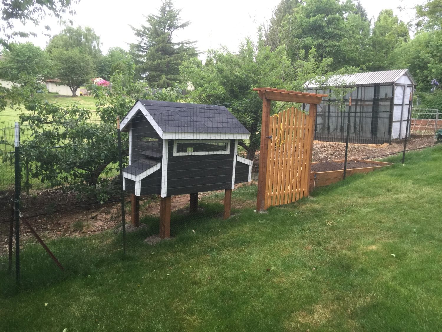 Jul 29, 2015 Thread starter #5 Toml Chirping 7 Years Joined Apr 14, 2015 Messages 10 Reaction score 2 Points 77 Location Tigard, Oregon I just low fenced off a area of the garden under the apple trees for them. It's about 20x40 and I'll open the whole garden area up for them in the winter time. The garden area is pretty big and it's fenced high to keep all the deer out.
