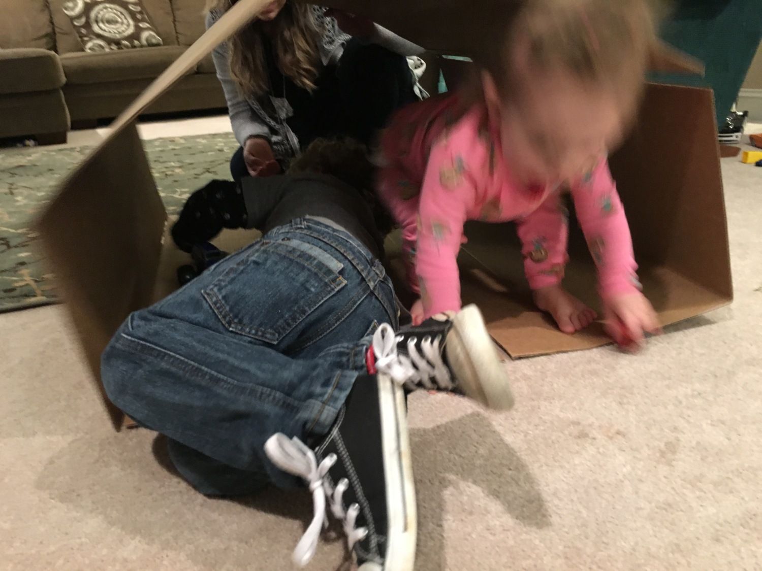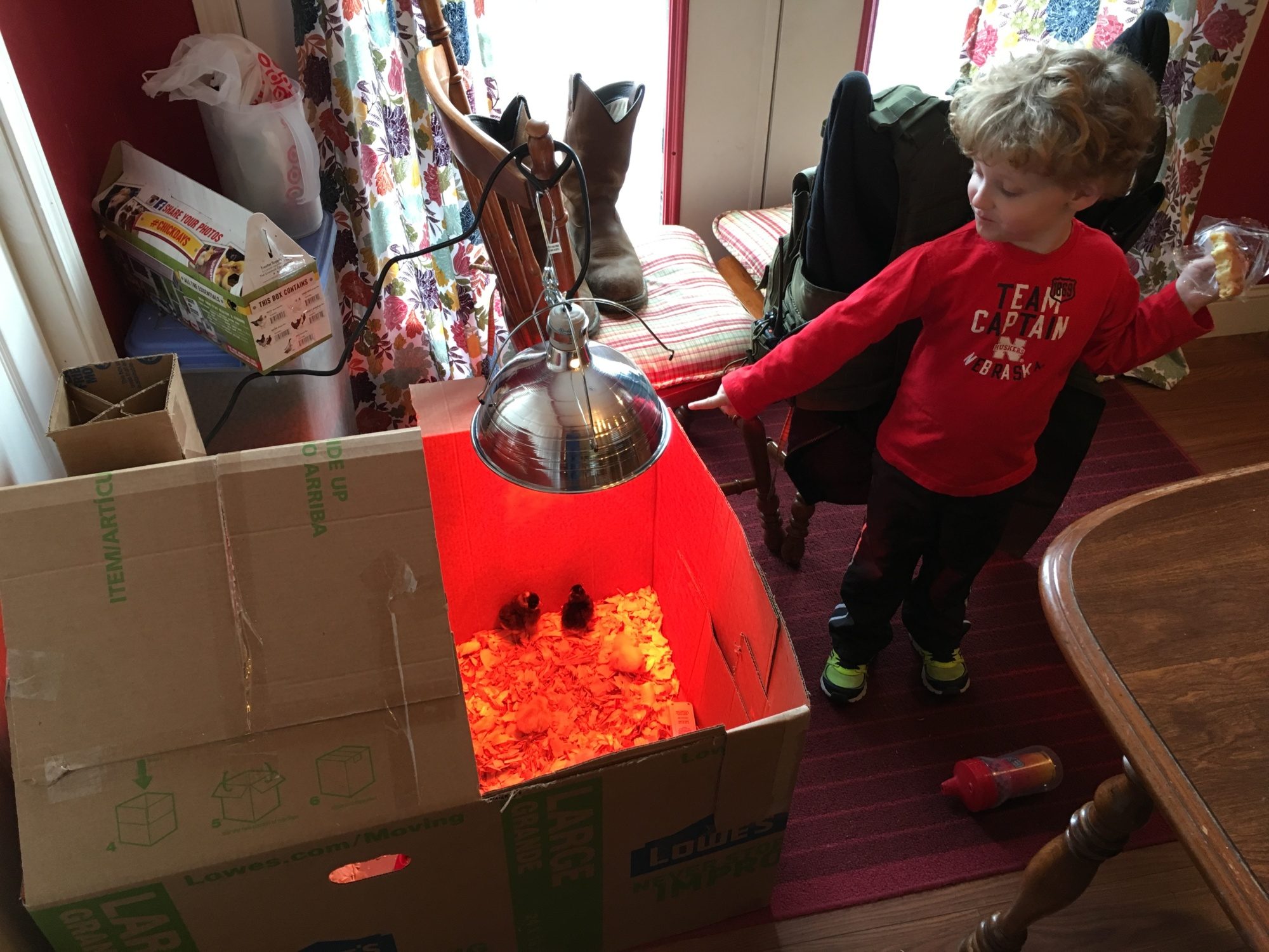 Brooding box fun. We used 2 cardboard boxes, cut and taped.