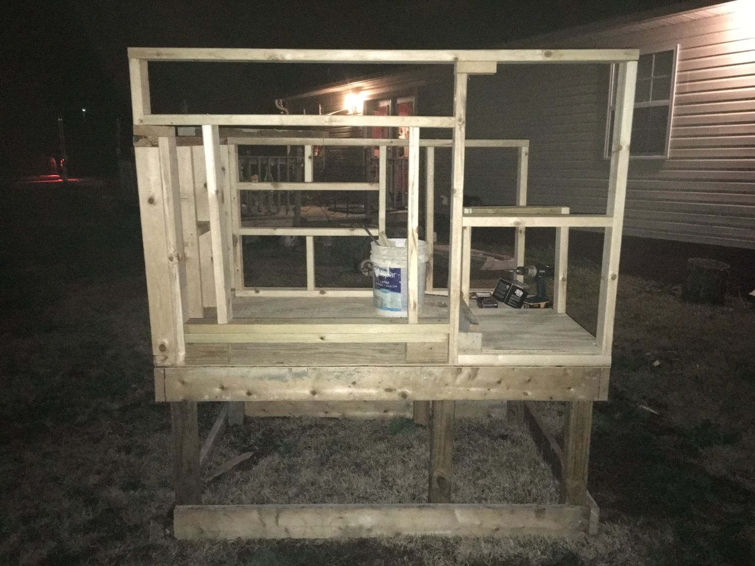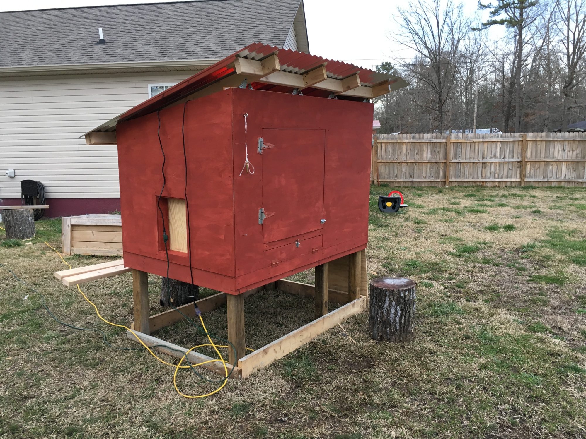 . The best I can tell, it was based off the Wichita Coop. I wanted to incorporate the nesting boxes and a storage/water locker onto the coop platform for a couple of reasons.