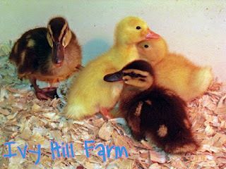 Well, I grew attached to the like peeping darlings (that the kids named Phineas and Ferb) and decided one day a few days after we brought them home that they were lonely and needed friends, so went and bought 2 more. Of course, the didn't have Rouens any more, but they did have Pekin, so we now have 2 Pekin ducks named Candace and Stacy.