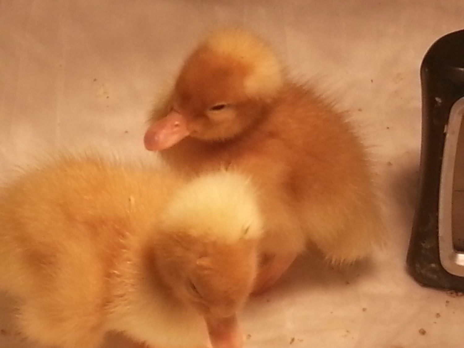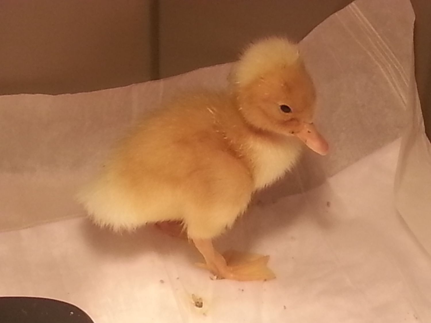 The 2 crested ducklings seem to be doing ok. They're very active and are drinking and eating.