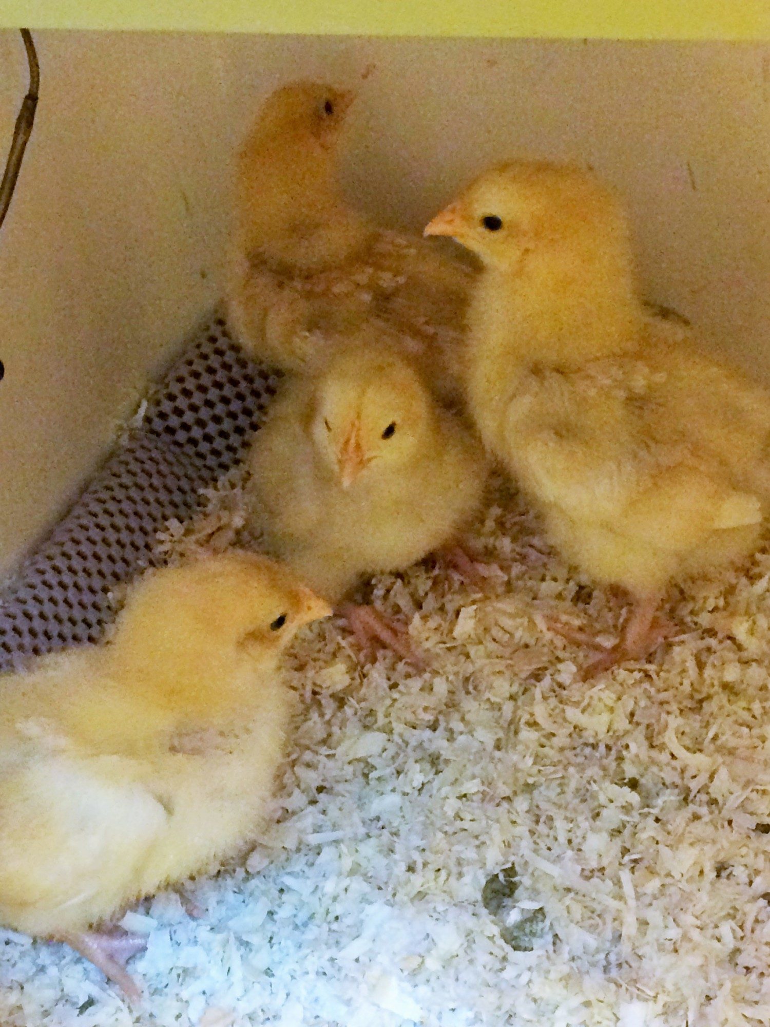 These are my baby Buff Orpingtons at 3 weeks old. They are eight weeks old now fully feathered. I also have 1 Star hen and 6 black Australorps 2 - 3 years old, still laying. I have had the babies in the same coop with the older hens but blocked with chicken wire so they really can't get to each other. They have been like that for 2 weeks. The older hens watch them and visa versa. I want to open the barrier this week and see what happens. My only dilemma is the food we give the older hens are layer pellets and I don't think the babies should be eating that yet. Right now they are eating grow crumbles. Will the pellets hurt the 8 week chicks? Please help!!
