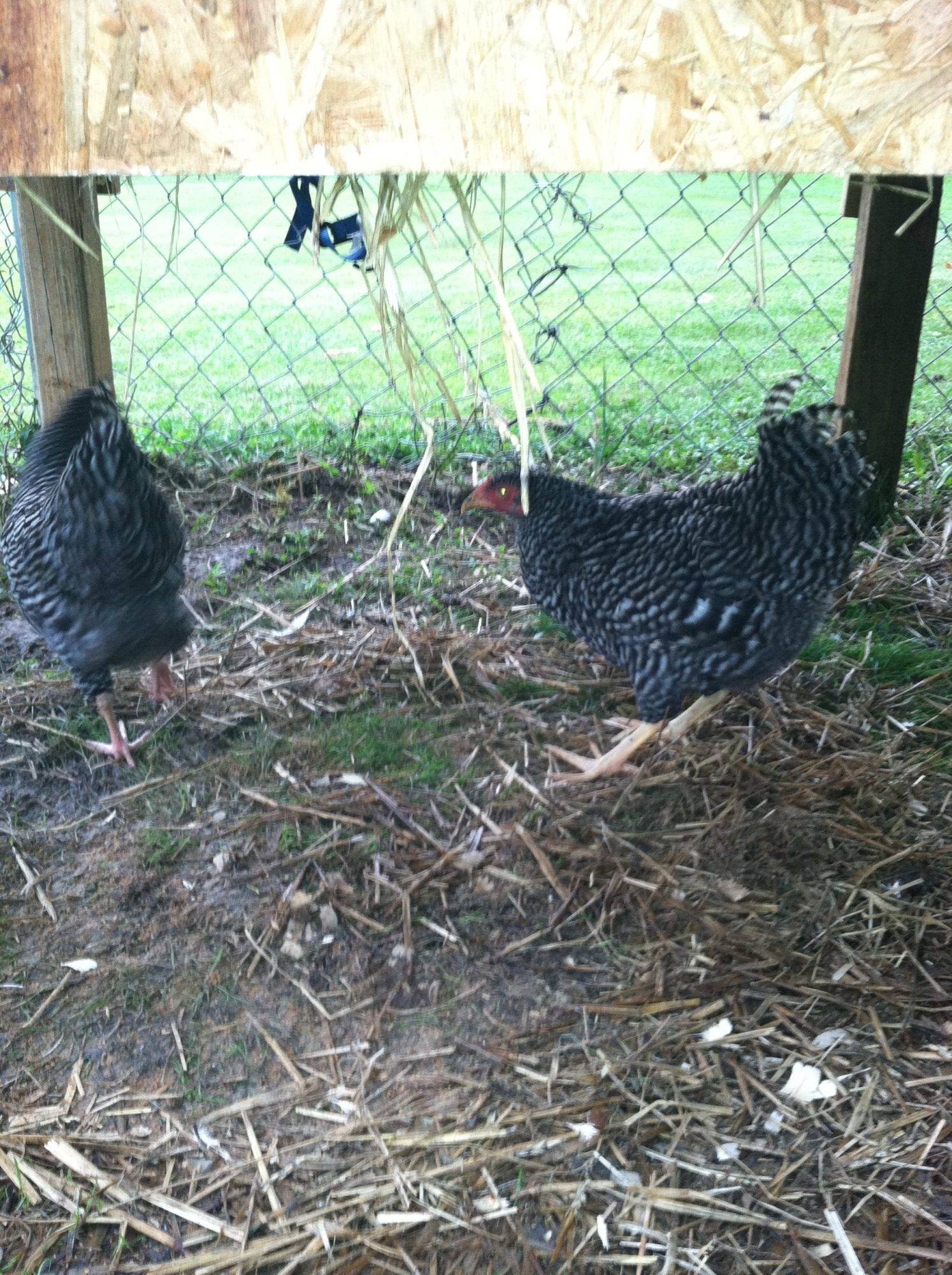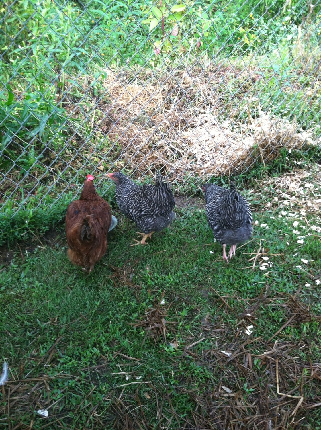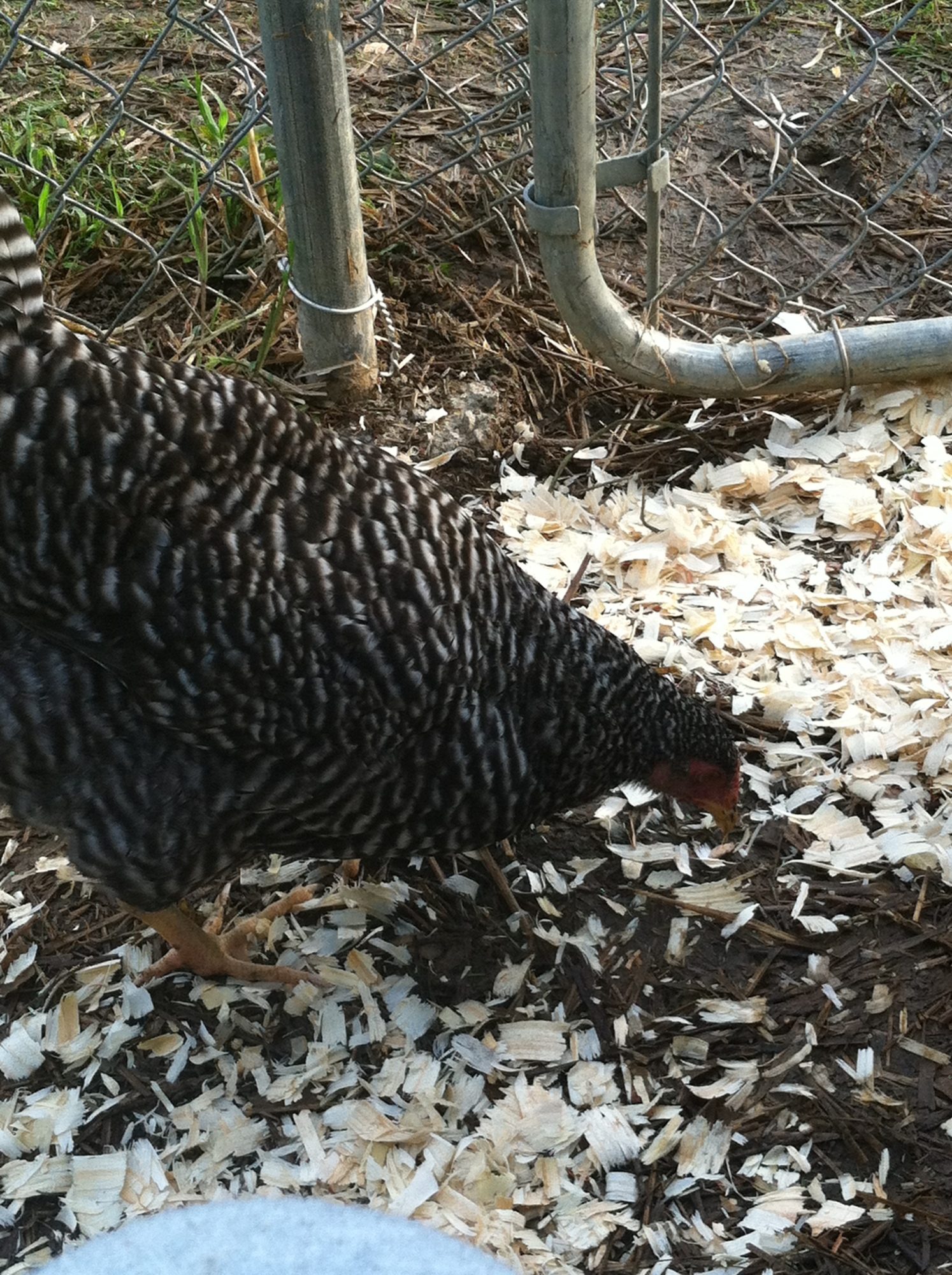 The following are pictures of my hens **** LOTS OF PIC****. Could you guys possibility give any feedback on size (idk if you can tell if they are near laying size or not), bout the plymouth rock/amber link and the molt of the golden comet. Thanks,