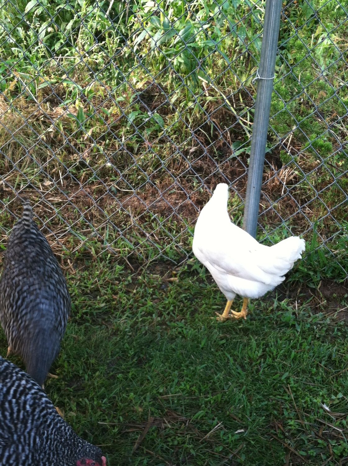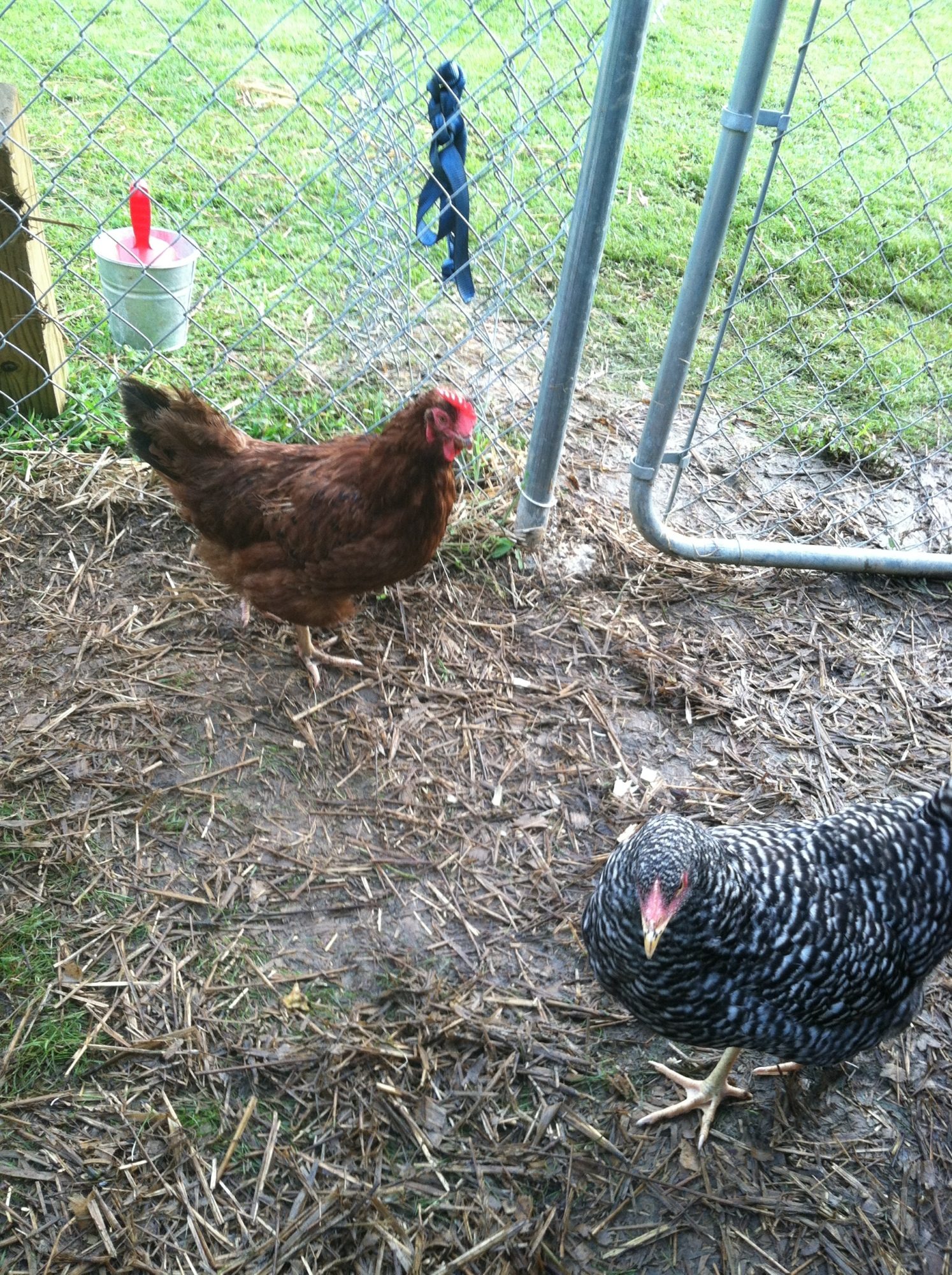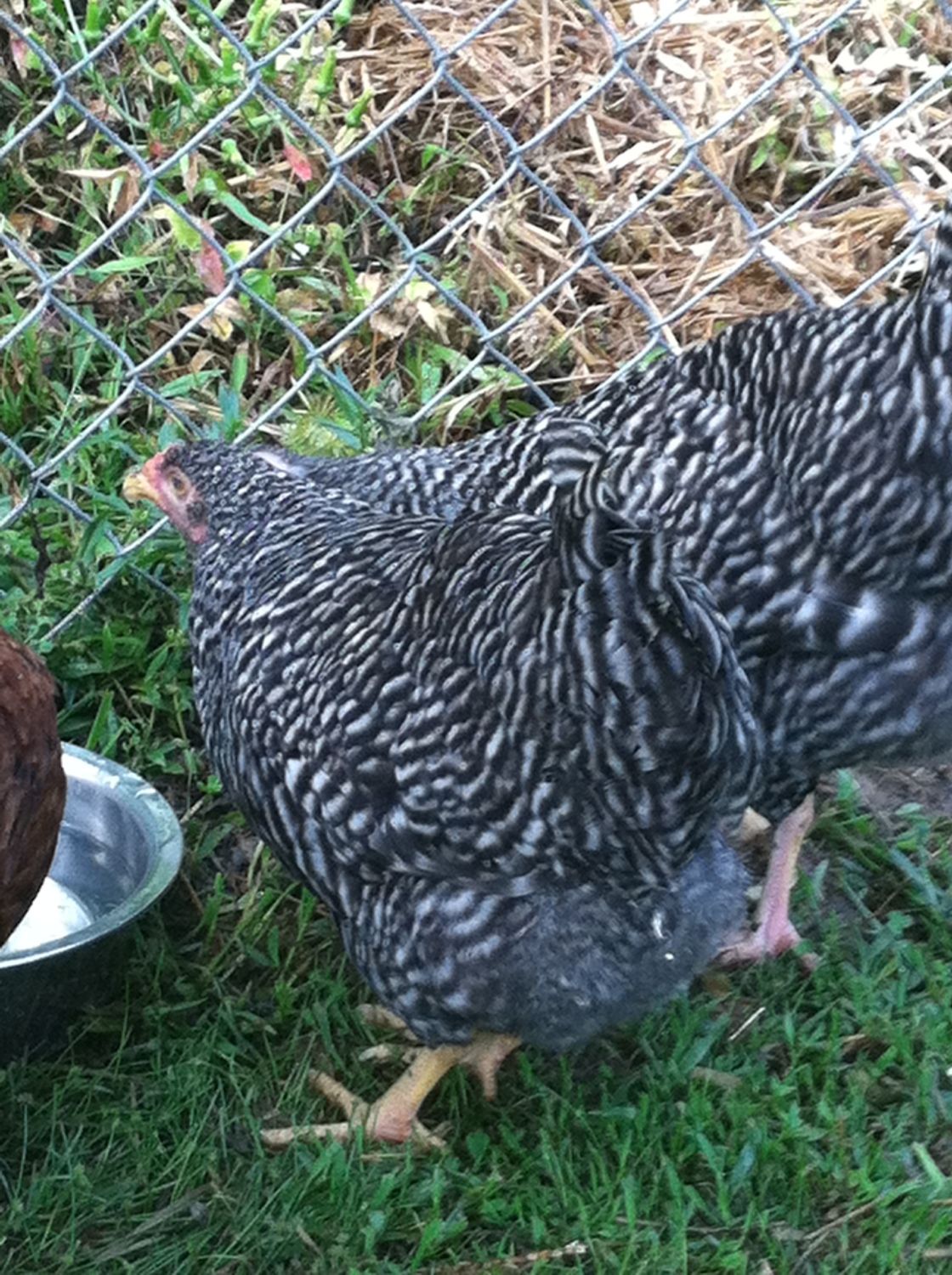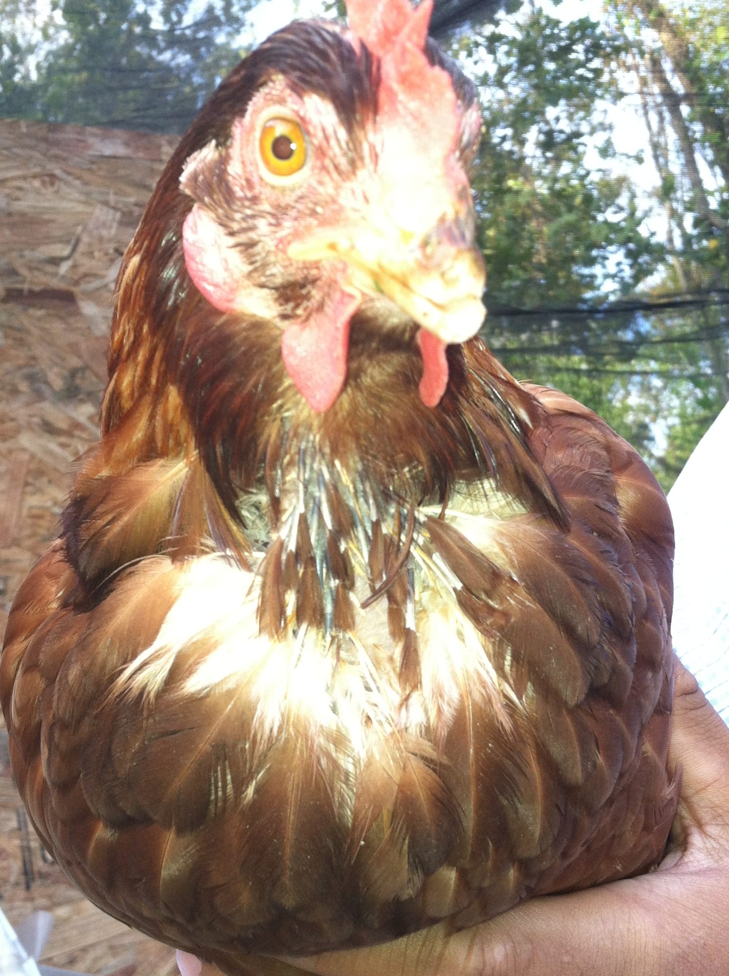 The following are pictures of my hens **** LOTS OF PIC****. Could you guys possibility give any feedback on size (idk if you can tell if they are near laying size or not), bout the plymouth rock/amber link and the molt of the golden comet. Thanks,