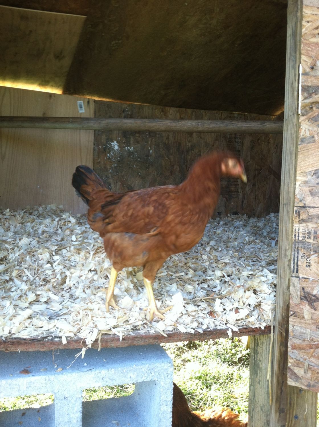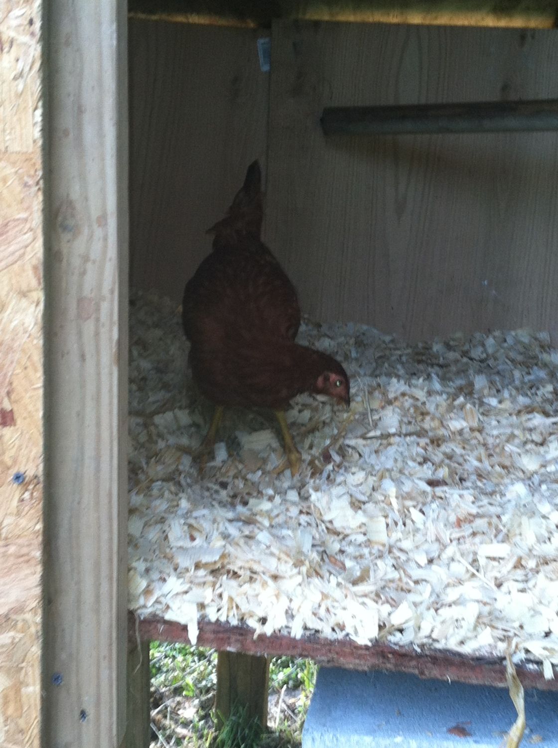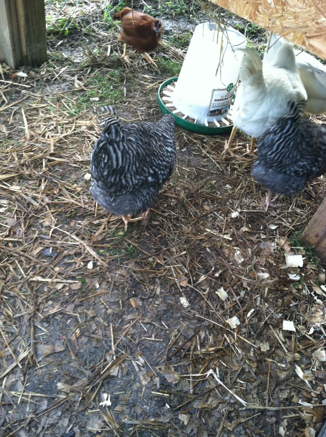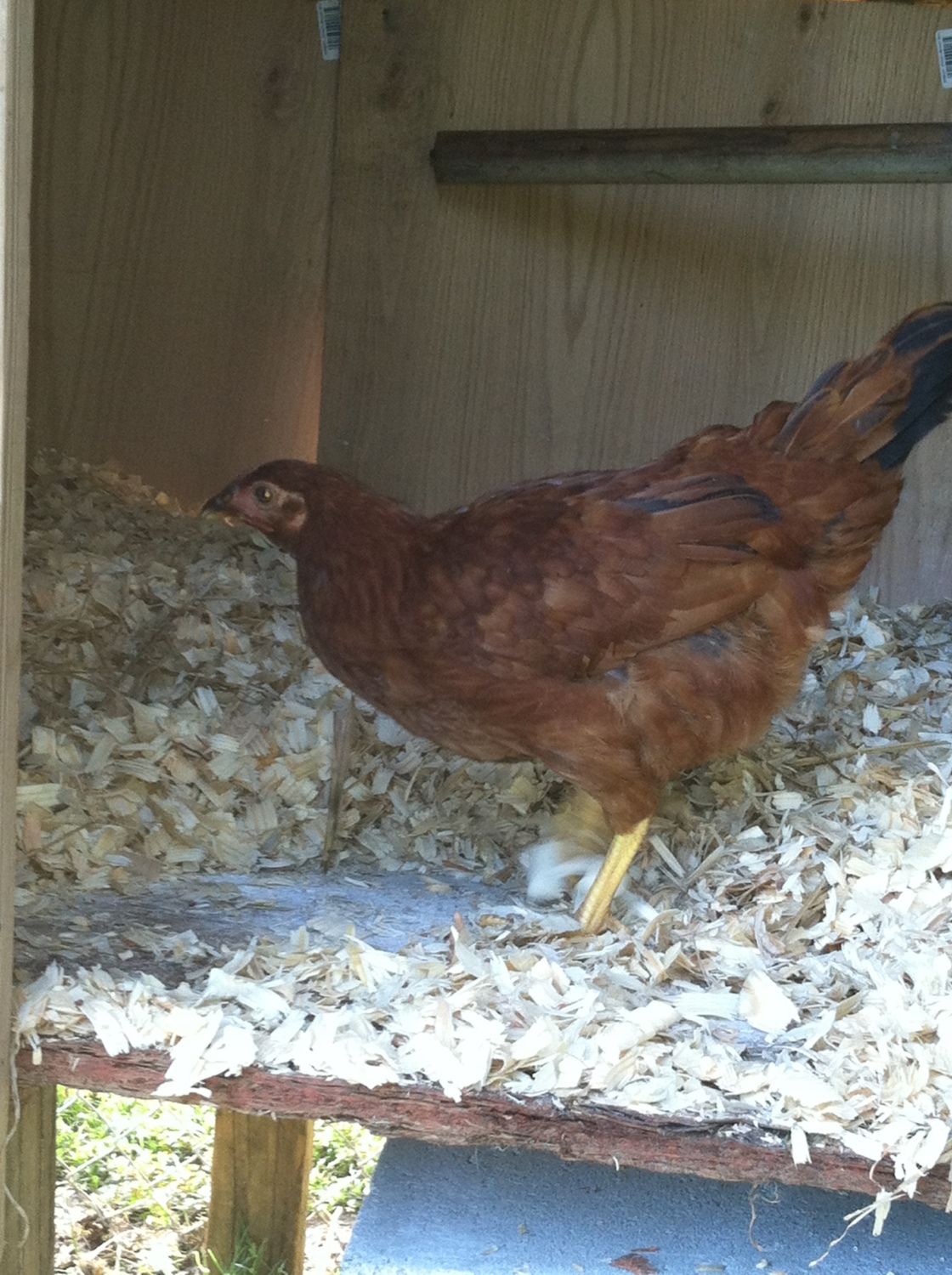 As of now our flock consist of 9 hens. Most are about a month out from laying (atleast that what the seller's told me). I have one that is laying pretty much 6 days out of 7. She is a Rhode Island Red that we named Reddy. I purchased a golden comet (an older one - seller said about 1.5yrs old or so) but she has yet to lay an egg. It has been about three weeks. When I first purchased the hens, it took Reddy only two days and she started laying in her new home. I believe the golden comet is either 1) burned out, or 2) recovering from a molt, becuase she is missing some feather on her neck and new ones are starting to grow in. Out of the 9 hens in my flock, I have 3 that are RIR (one laying, and 2 are about 13weeks old [seller tells me]), 2 barred rocks [seller says about a month out from laying], 1 golden comet (her situation is explained above), 1 deleware (seller says about a month out), and 2 white rocks ( i believe one is actually an Amber-link and the other I believe is an actual white rock).