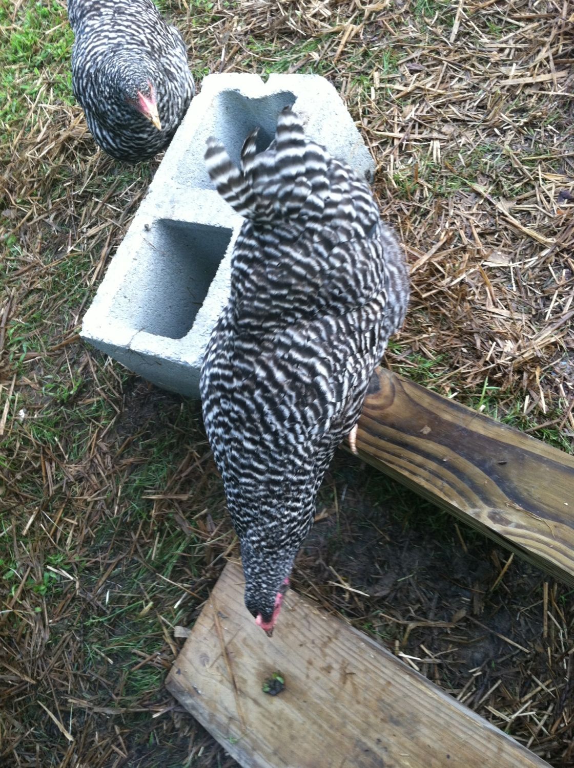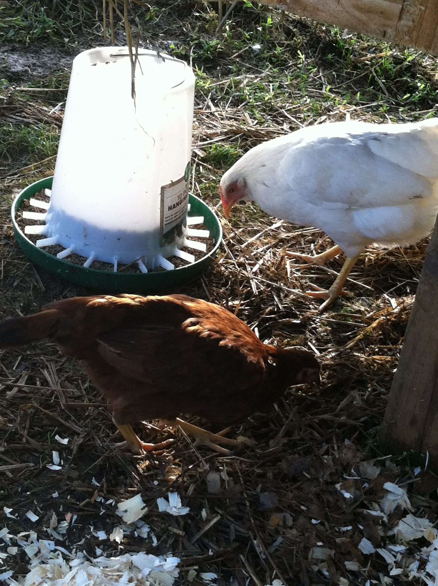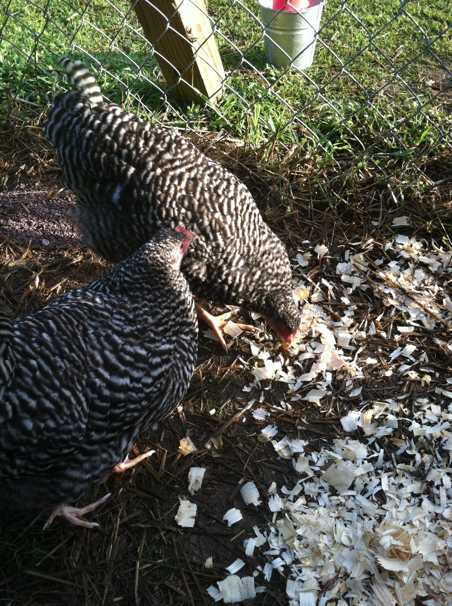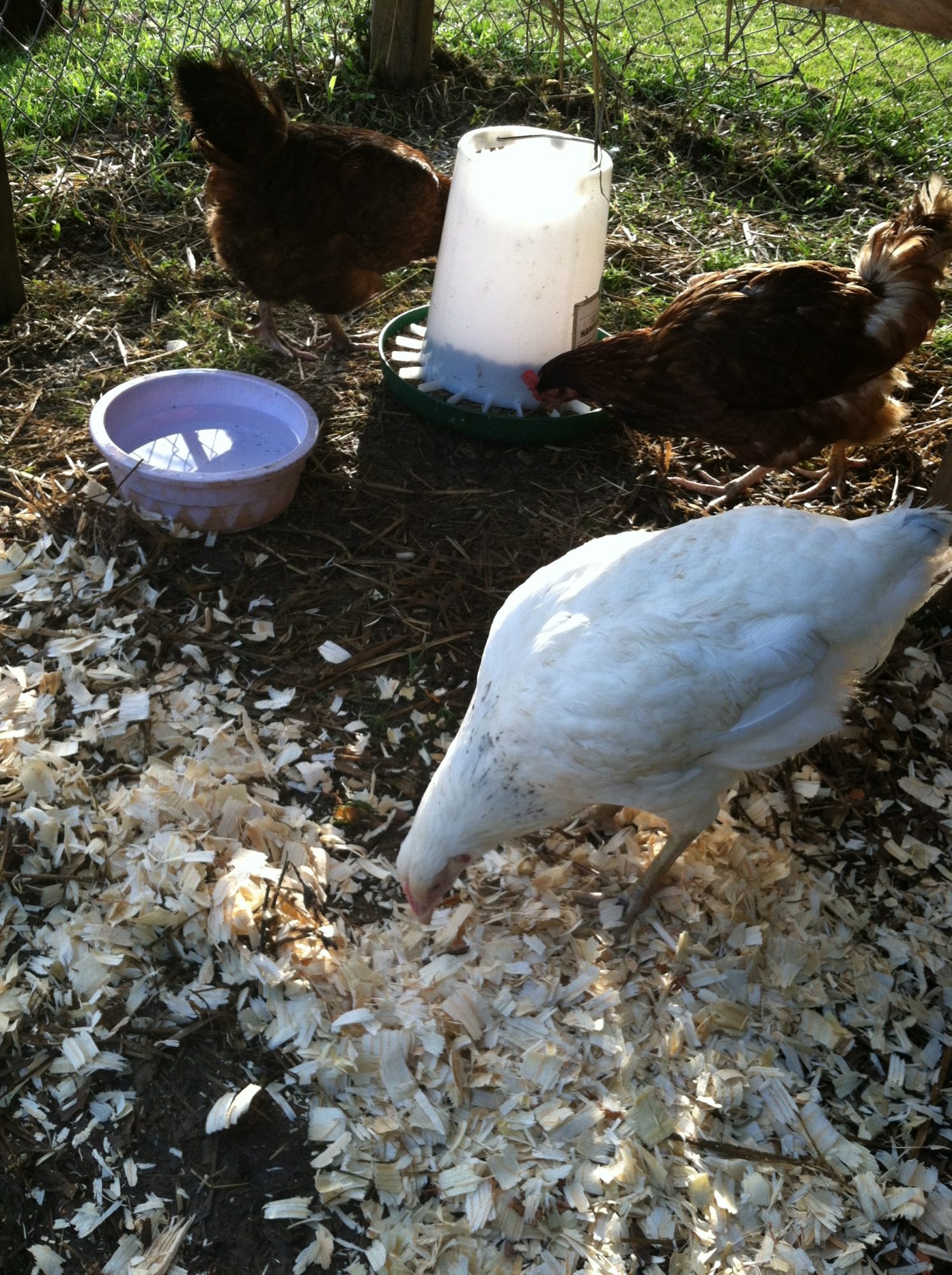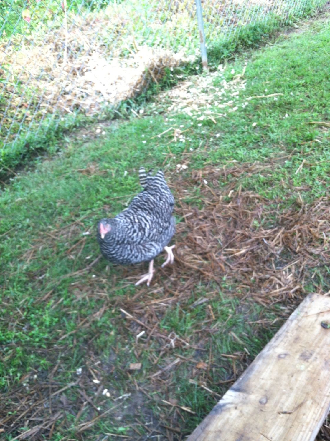 It seems that at the top of the pecking order is the golden comet( henrietta) she always gets the food first, and pecks other who try to join her, then follows Reddy - the laying RIR. The next trio of birds seemed to be pretty equal (the two barred rocks and the deleware). Then follows the Amber-link and behind her is the white rock. At the bottom are the two young RIR, unfortunately everyone pecks at them and picks on them, they are usually scarred and stay in the coop perched on the roost.