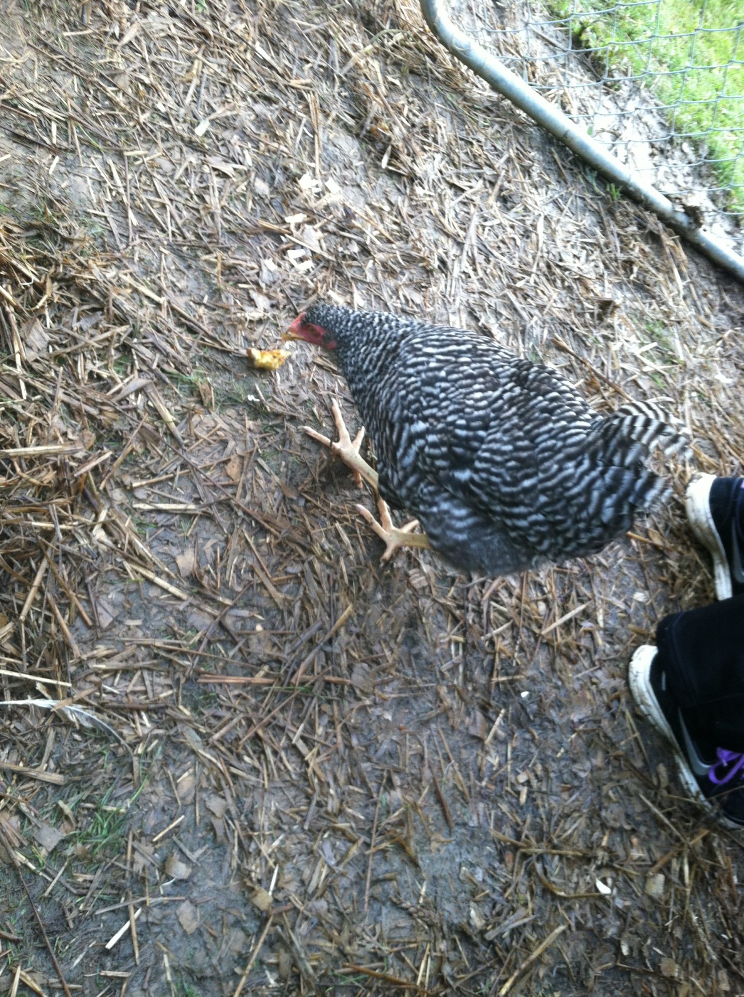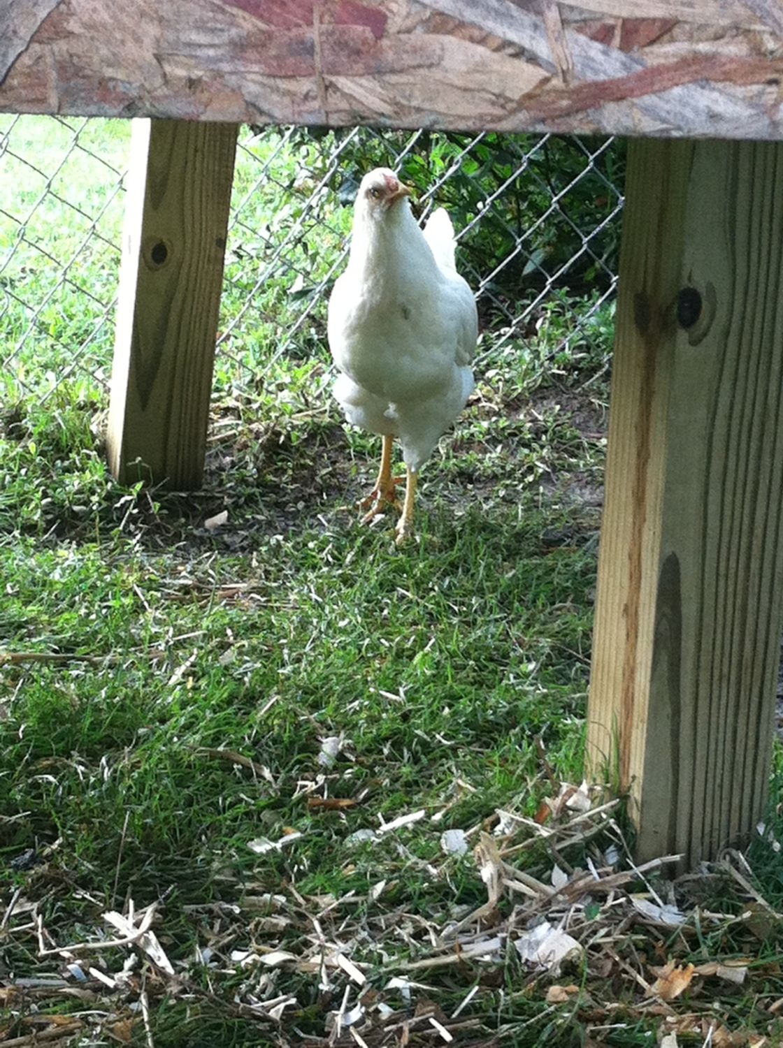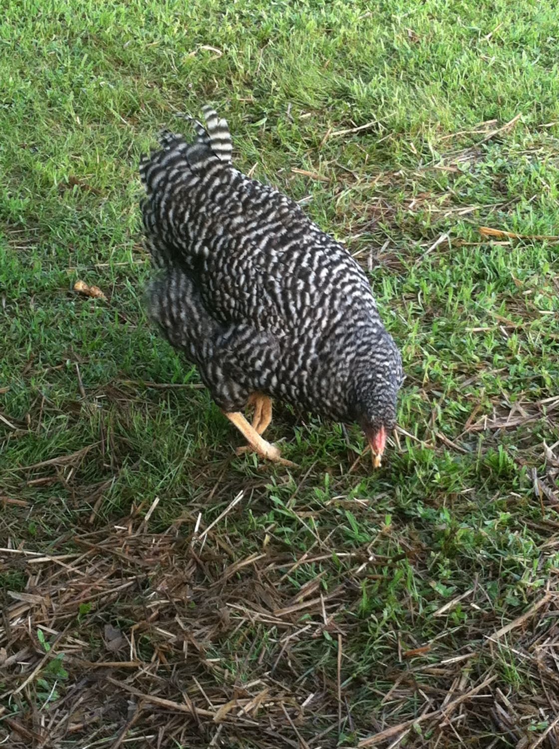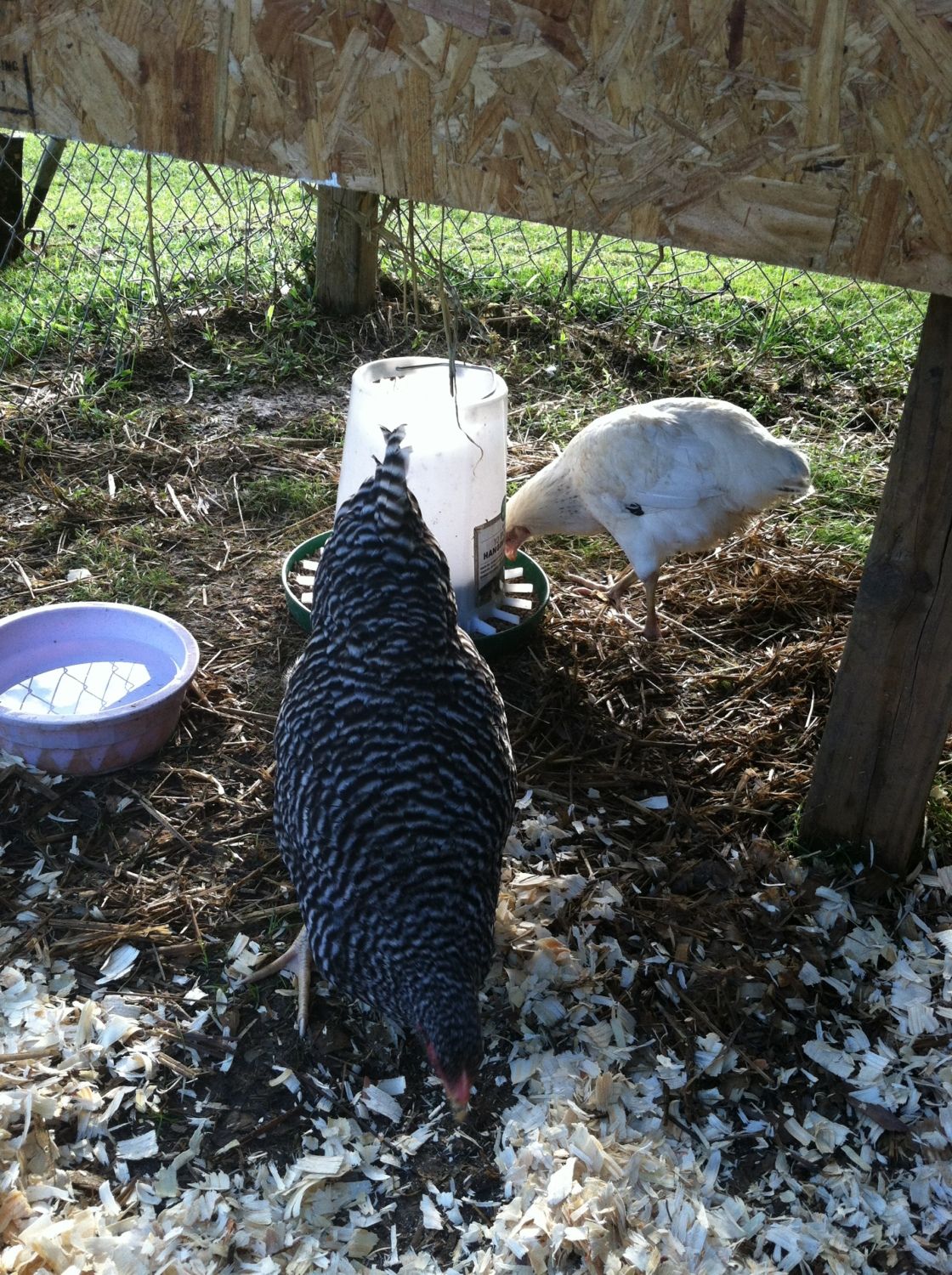 It seems that at the top of the pecking order is the golden comet( henrietta) she always gets the food first, and pecks other who try to join her, then follows Reddy - the laying RIR. The next trio of birds seemed to be pretty equal (the two barred rocks and the deleware). Then follows the Amber-link and behind her is the white rock. At the bottom are the two young RIR, unfortunately everyone pecks at them and picks on them, they are usually scarred and stay in the coop perched on the roost.