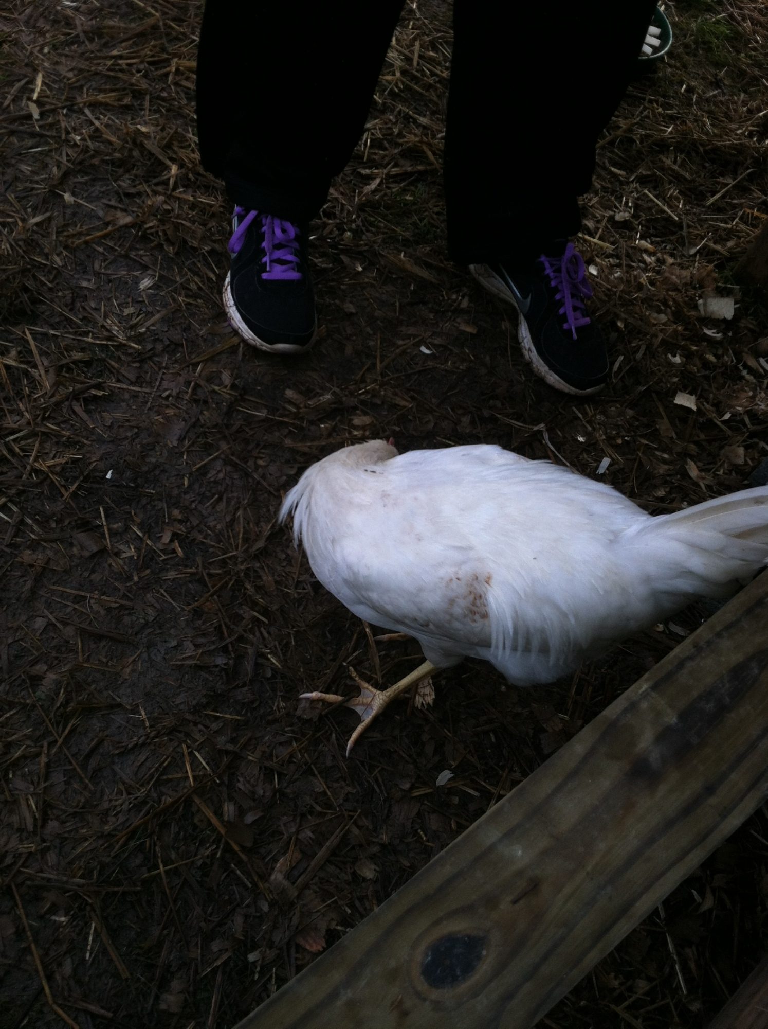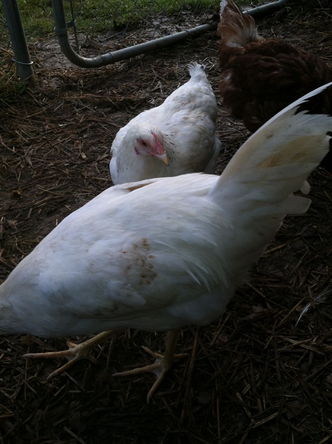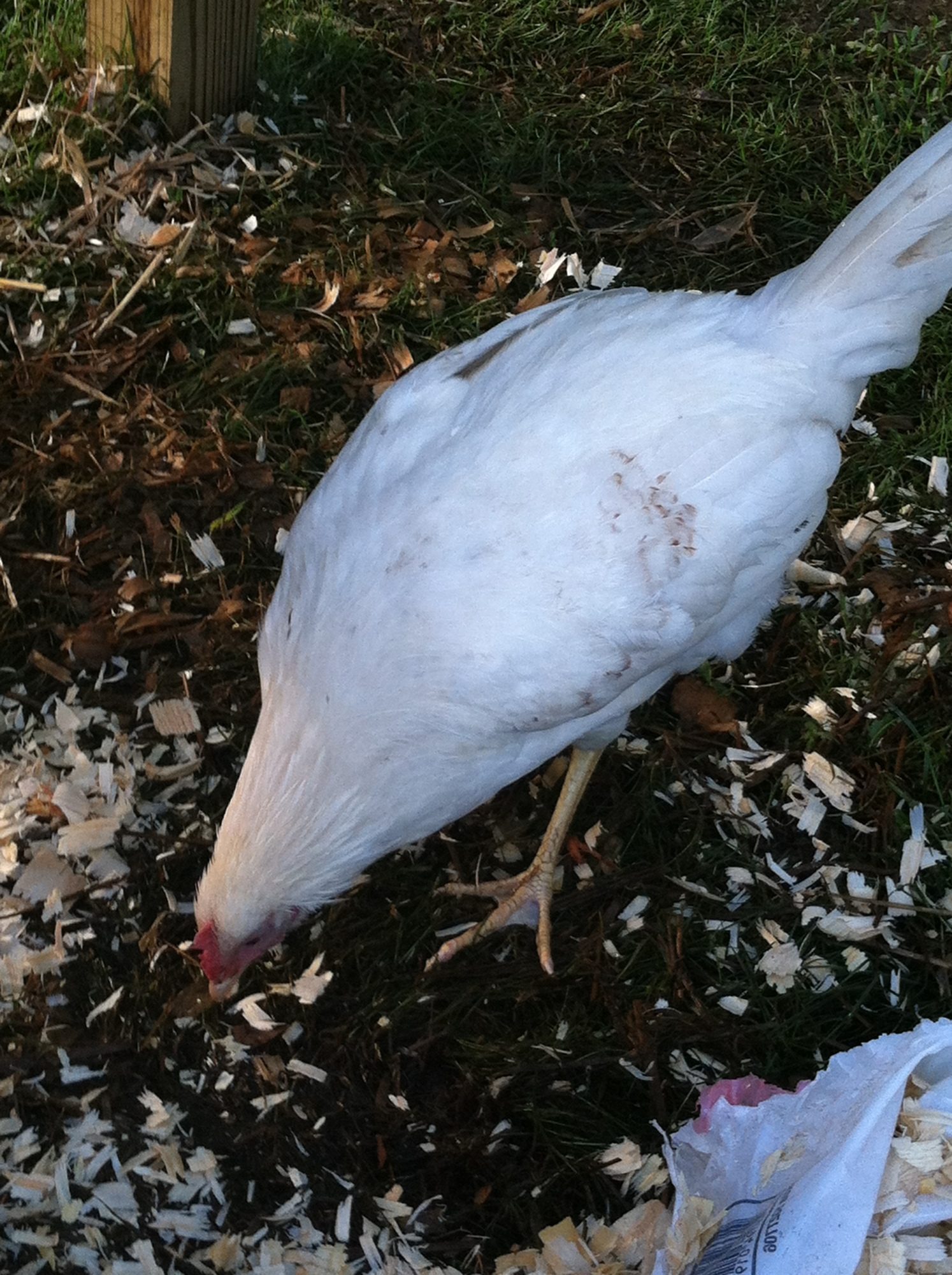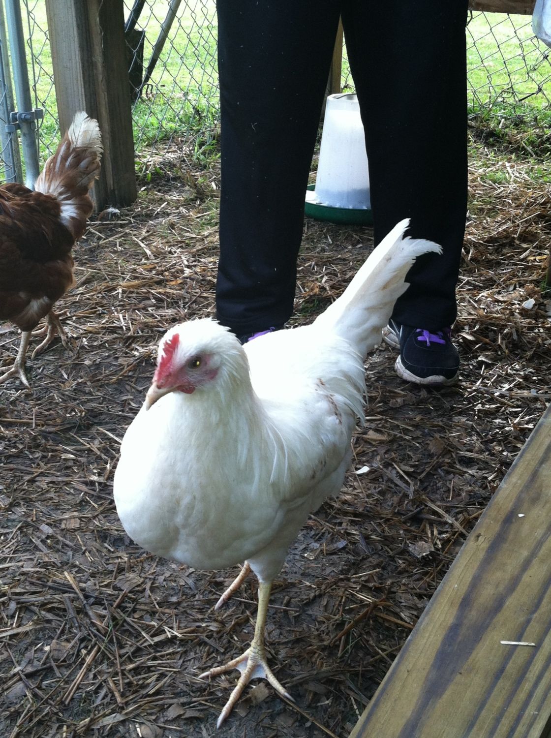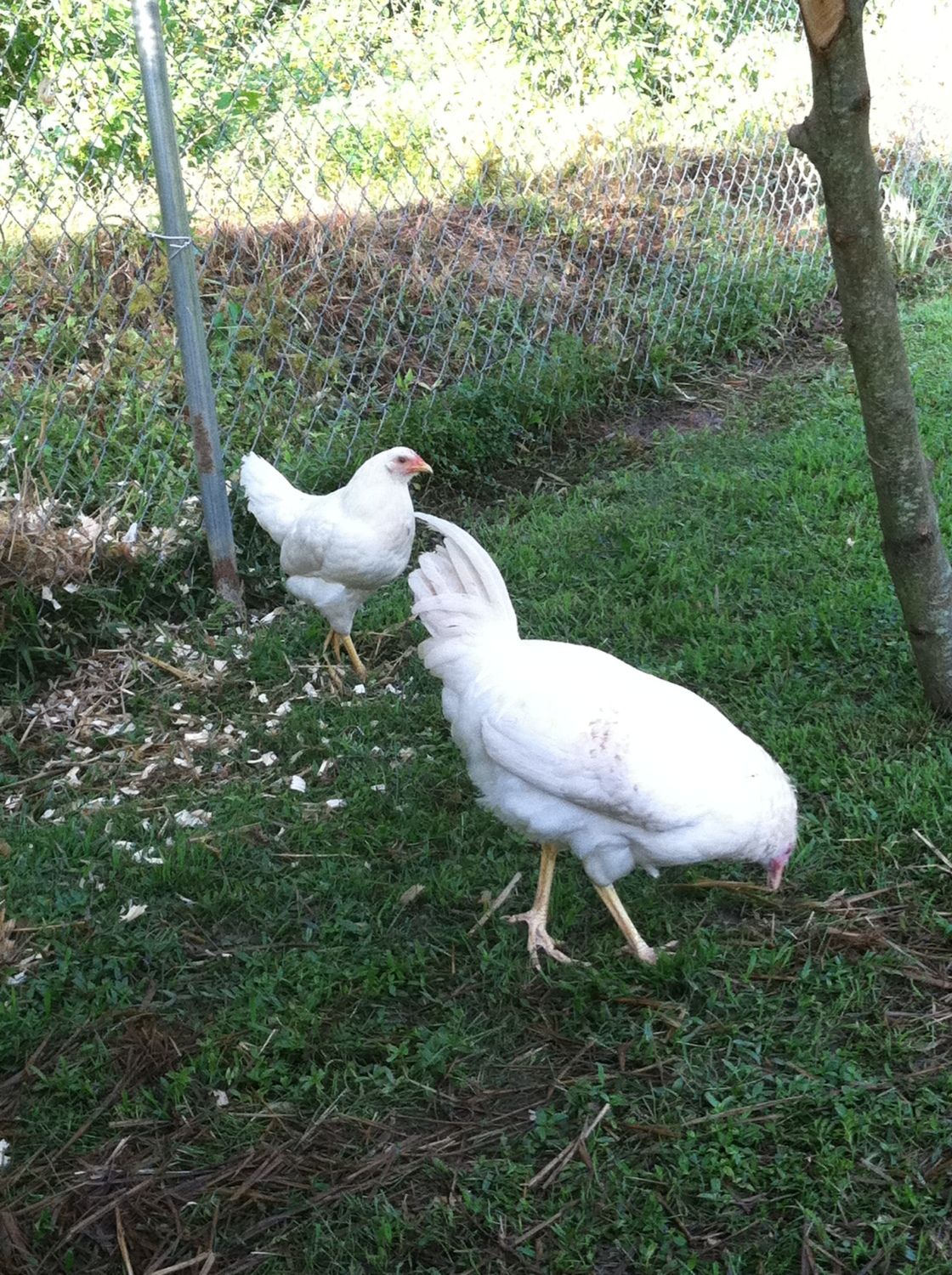 It seems that at the top of the pecking order is the golden comet( henrietta) she always gets the food first, and pecks other who try to join her, then follows Reddy - the laying RIR. The next trio of birds seemed to be pretty equal (the two barred rocks and the deleware). Then follows the Amber-link and behind her is the white rock. At the bottom are the two young RIR, unfortunately everyone pecks at them and picks on them, they are usually scarred and stay in the coop perched on the roost.