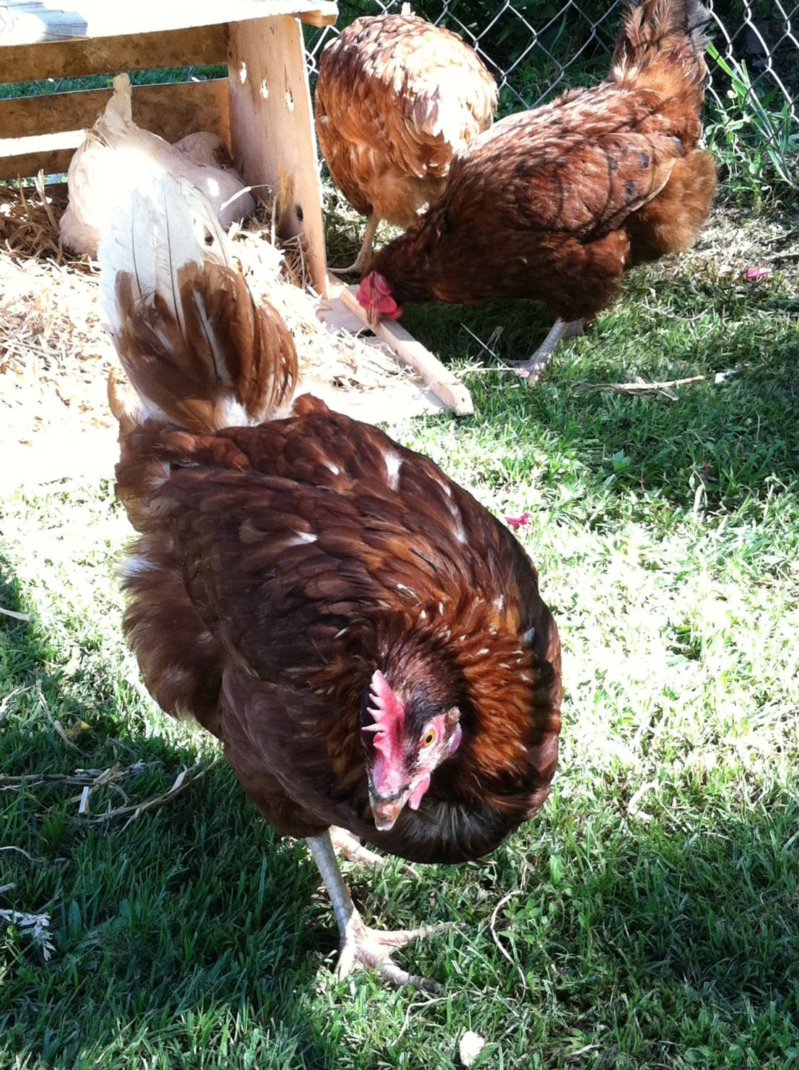 Rhode Island Reds (Reddy and the two smaller ones)