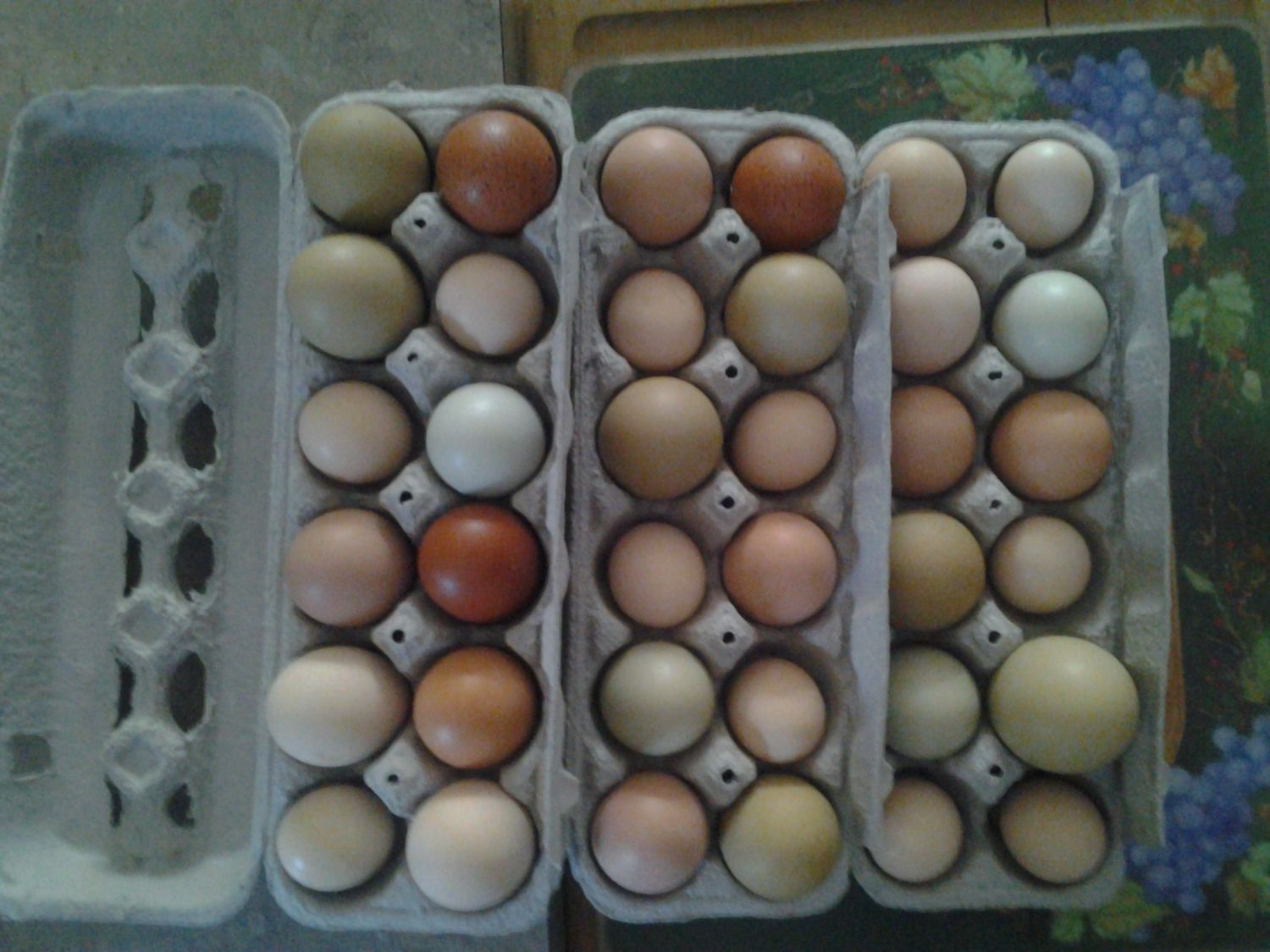 Beautiful eggs, love all the colors. What kind of chicken laid the big green egg (last carton on the right)?
