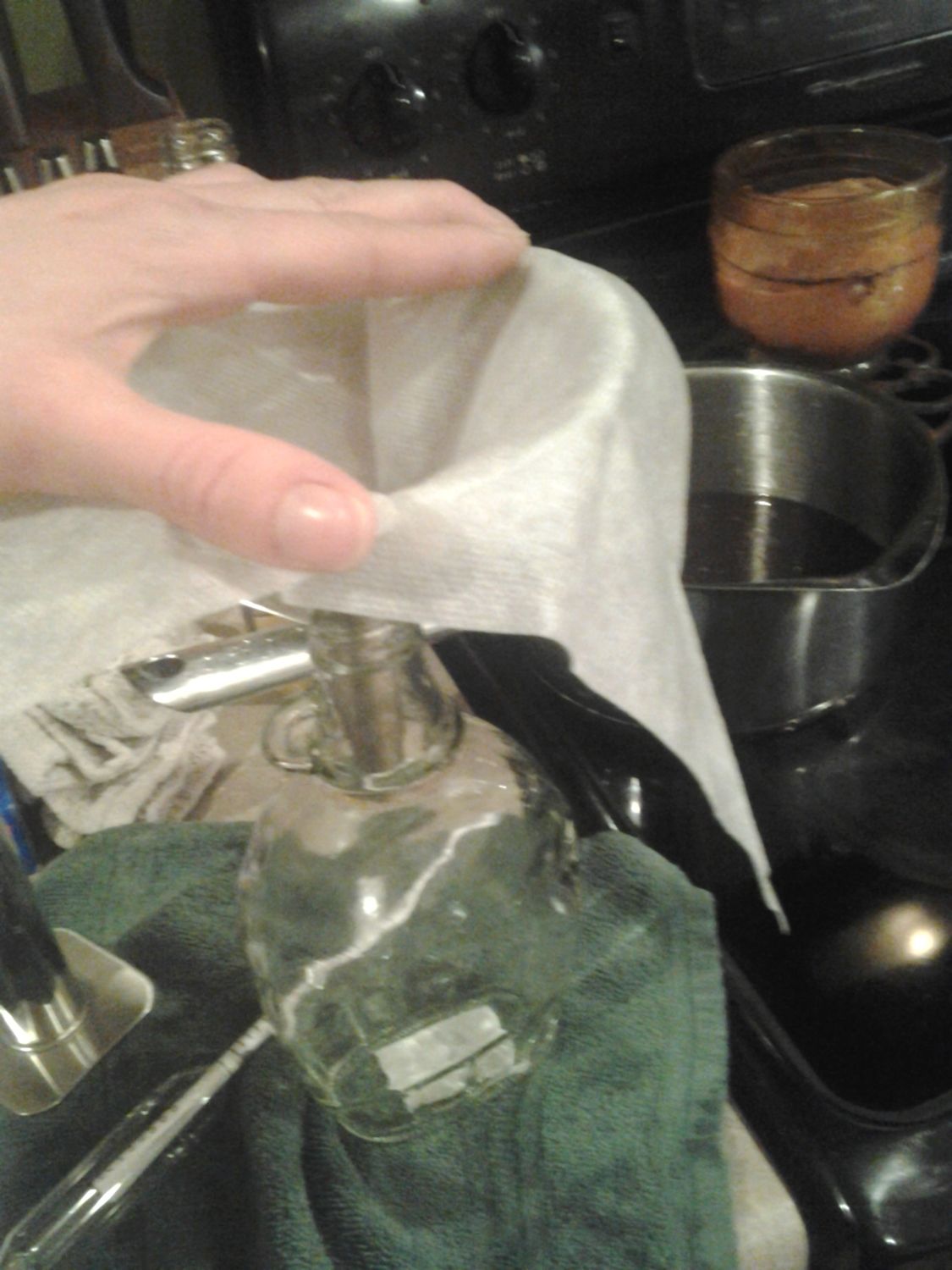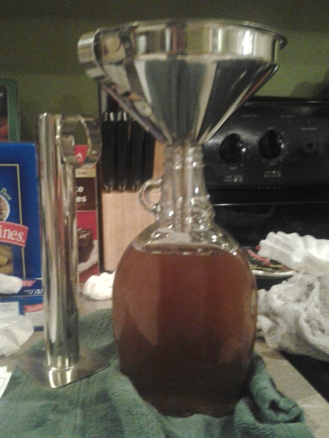 funneled the syrup in, we were so close to the top. I probably shouldn't have been tasting it continuously during the 7 hour cook down lol maybe that's where that last missing bit went to. lol