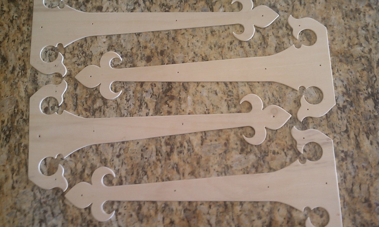 I researched carriage hinges online for my fake door and used a couple different ideas in my hinge design. After making a template I stacked four sheets of 1/8” material then knocked out my hinges using my router with a pattern bit.