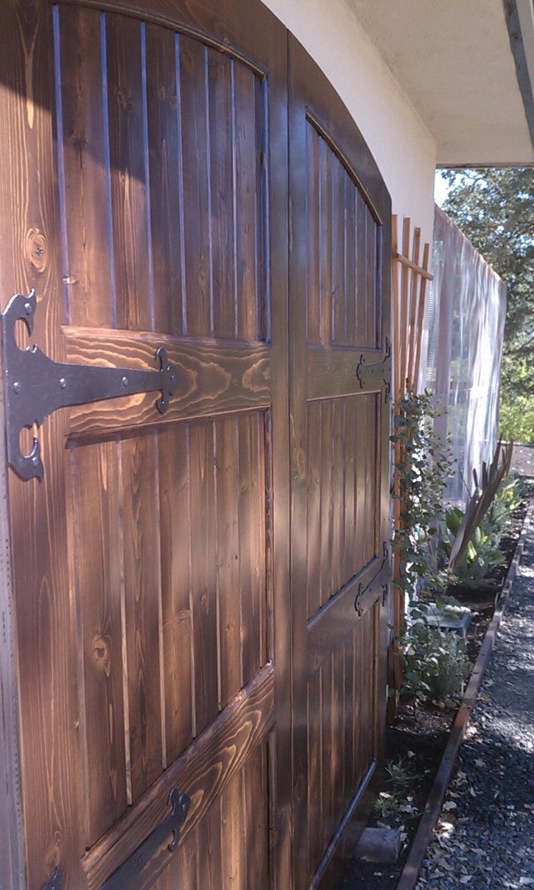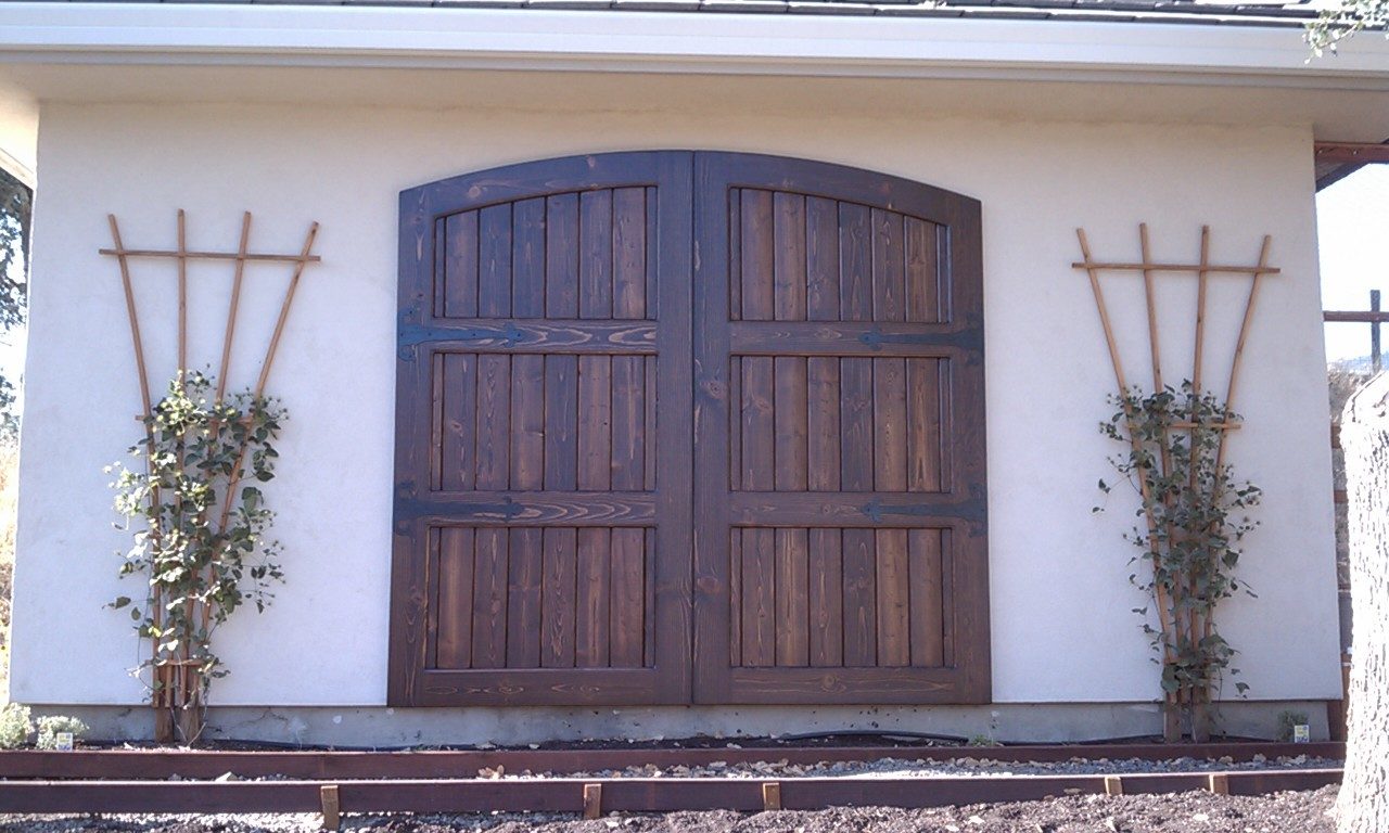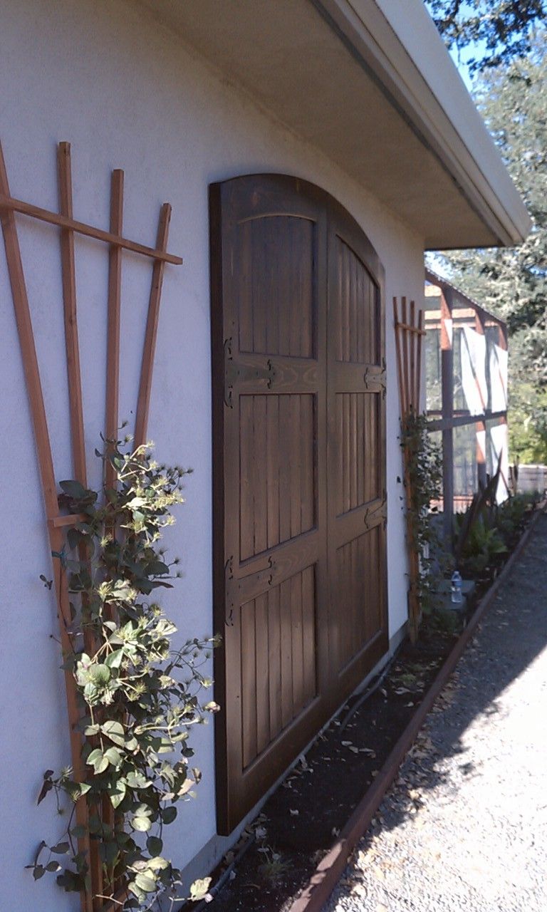 As a break from digging holes for flowers and shrubs and messing with the drip system around the house I started a fun wood project. I built a set of carriage doors in attempt to make an unattractive bare stucco wall on the coop more visually appealing. First I thought windows would have been nice, but that’s the same wall where the solar inverter, disconnects and electrical box are mounted on the inside so that was out of the question.