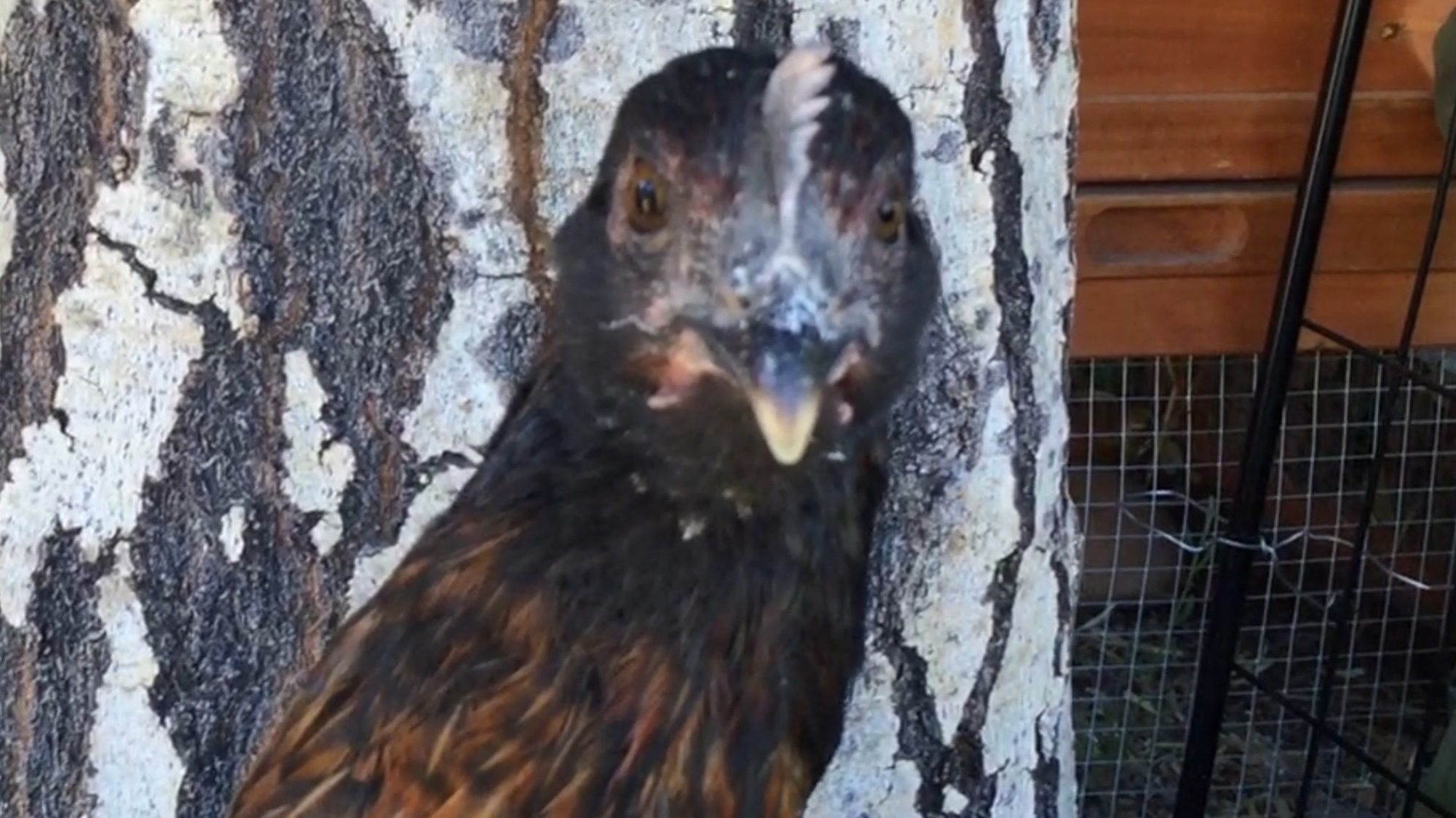 I've posted a video of her. Today there's a white crystal powdering on her nose, I don't know if she just got into something? I haven't tried to wipe it off yet, and didn't see any references about powdering on the nose when I googled diseases. What should I treat her with? She eats and drinks fine. Her eyes look bright. I've checked feathers around her neck, but didn't check her vent when I had her (she's a little hard to catch when she's in the yard) She has some white dandruff like material on her feathers, but on the forum, people have mentioned that its due to their feathers coming in. My main concern is the sneezing or nasal passage clearing. There is no nasal discharge, her eyes are bright. The temperatures have been cooling off in the evening to 50's and 60's. Her cage is under a tree, and there is mainly dead leaves and dirt in her run area.