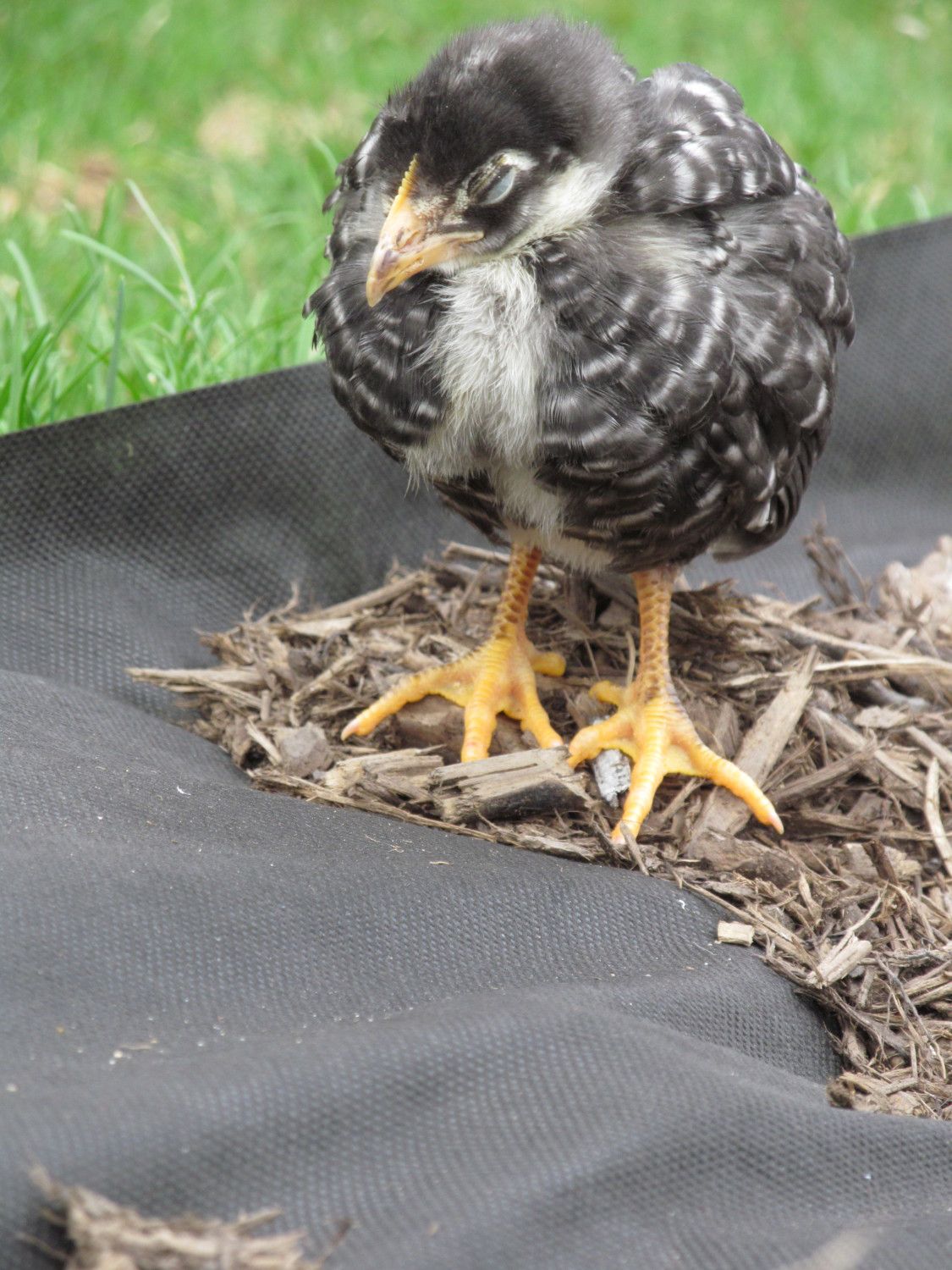 Hello! I am a first time chicken owner. To start our flock, my husband and I ordered 25 barred rocks (and also got 1 mystery chick which is a white crested black polish). They are a little over 5 weeks old now and all seem to be thriving...except one, that my daughter has named Minnie. She is much smaller than the rest. At first, I thought she may be a different breed or just the runt, but now I think she might be sick. She lets anyone hold her without running or resisting at all, she stands in one place a lot. Her eyelids seem to be shut alot (blind?) . She does eat and drink. The others seems to cuddle around her sometimes like a watch, protection, warmth. Yesterday she wouldn't go outside at all, and the others all seemed very concerned, today she went out and seemed better, but is still doing her typical behaviors. She even sits in the feeder to eat instead of standing. I wanted to attach a picture of her to see if anyone could tell me anything from the photo, I would really appreciate it. Thank you.