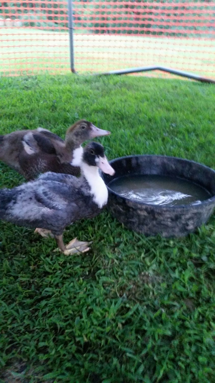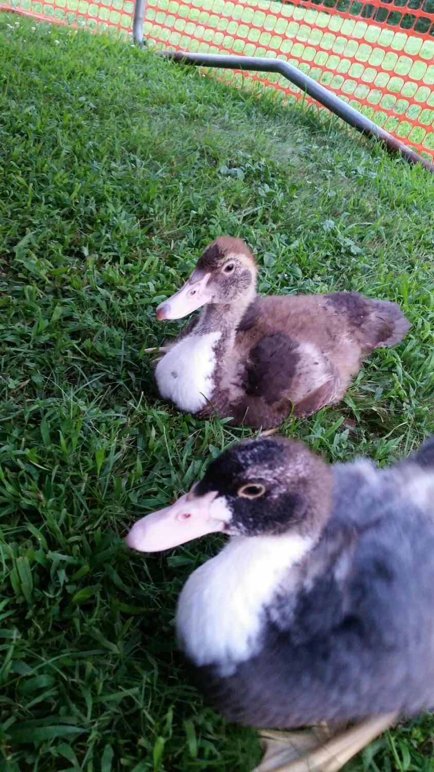 I was also thinking muscovy because of the bill. I don't know much about muscovies, so I can't help figure out the age. If they were a different breed, like black swedish, I would say they were 4-6 weeks, but I am not sure if muscovies develop at a different rate.