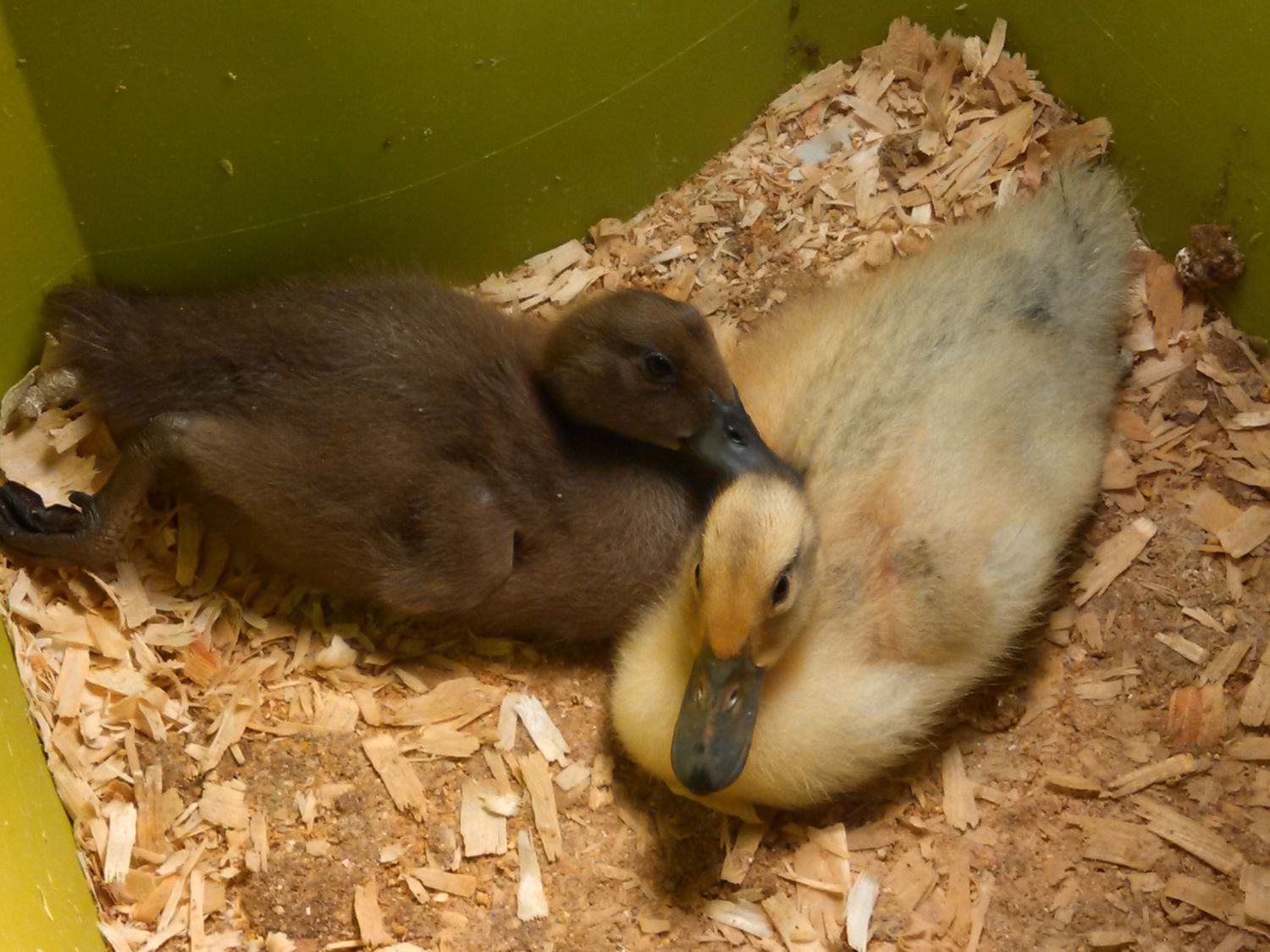Do you have any ideas what kind they may be? We believe the yellow one to be a female, as it is much louder and more vocal than the brown. Could be wrong, but that is just what we are thinking. The dark one is brown, as you can see.
