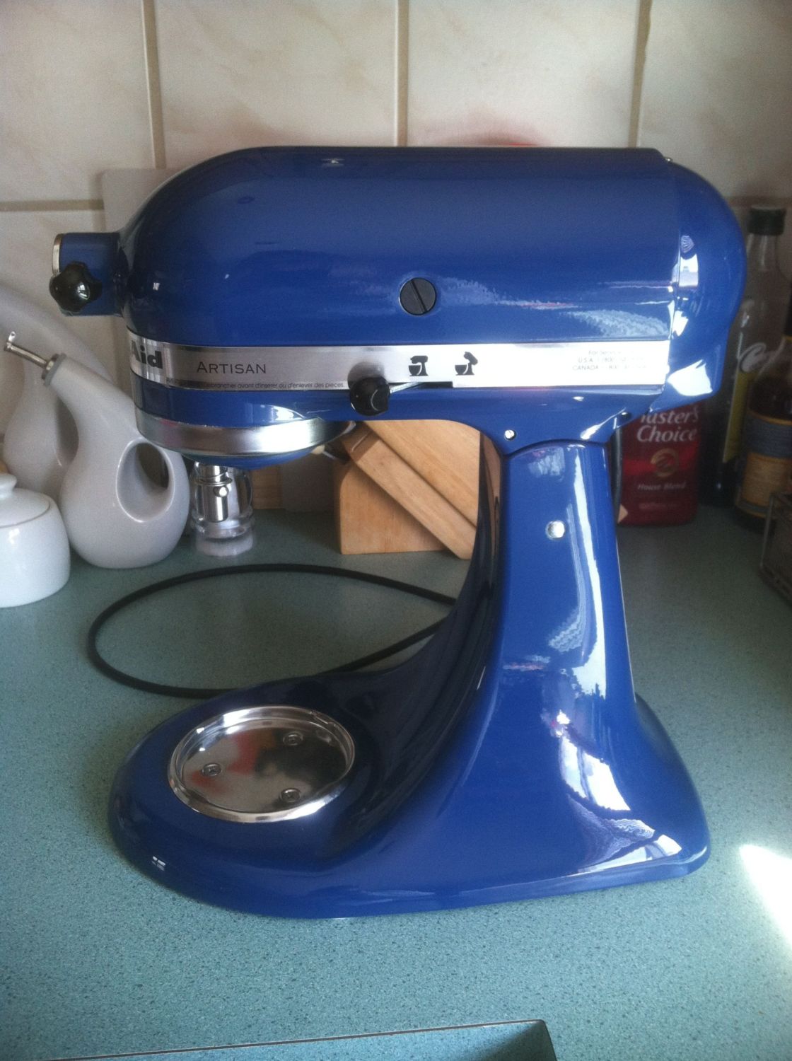 II got a new kitchenaide stand mixer. I always wanted one but thought $350 was a bit much to spend on a mixer. I came home the other day to this huge box on my steps that i could barely move. Opened it up and wallah! My husband totally surprised me. He did great on the color too. He's buttering me up for something and it's obviously going to be big.