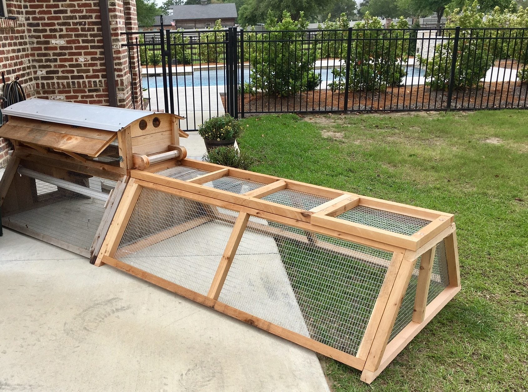 I've been reading the information on here for a while after deciding to possibly get a mobile coop for our large yard. A friend outgrew his coup, and offered it to me. I wanted four chickens, and although the coop is described as a coop for 2-4 chickens, it appeared small. I saw on the manufacturer's website where they sell an extension. I figured I could build it better, and slightly larger, so I did that last weekend.