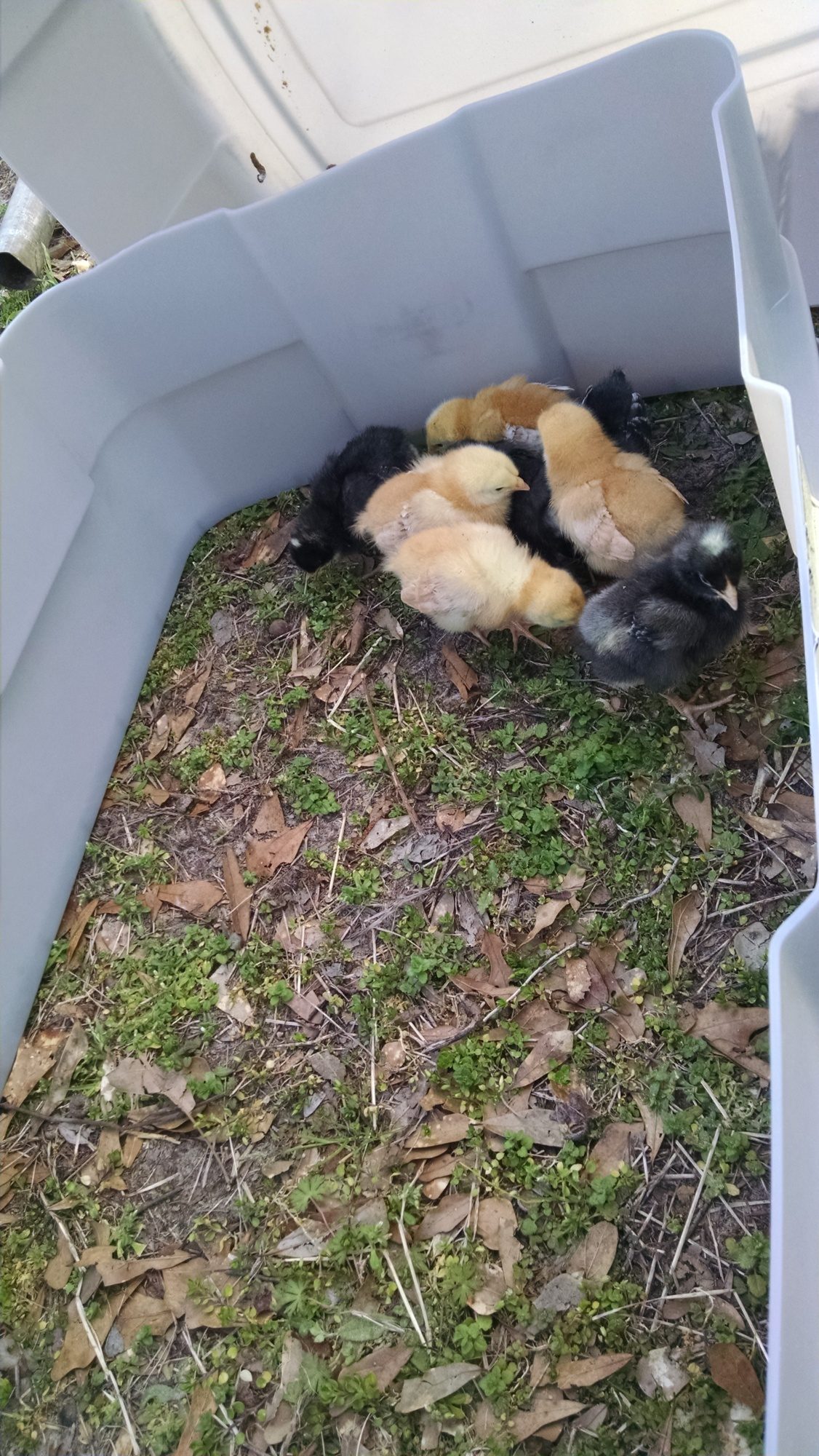 I am starting with TSC "Pullets" Barred Rock and New Hampshire reds 4 of each to start, I say "pullets" like that because I have one that I am not sure of (actually im not sure about any of them) This one seems to be acting the protector role and has a more pronounced comb (Or it may be that she has white markings on the face and it just looks that way).... I have had them for a week today.