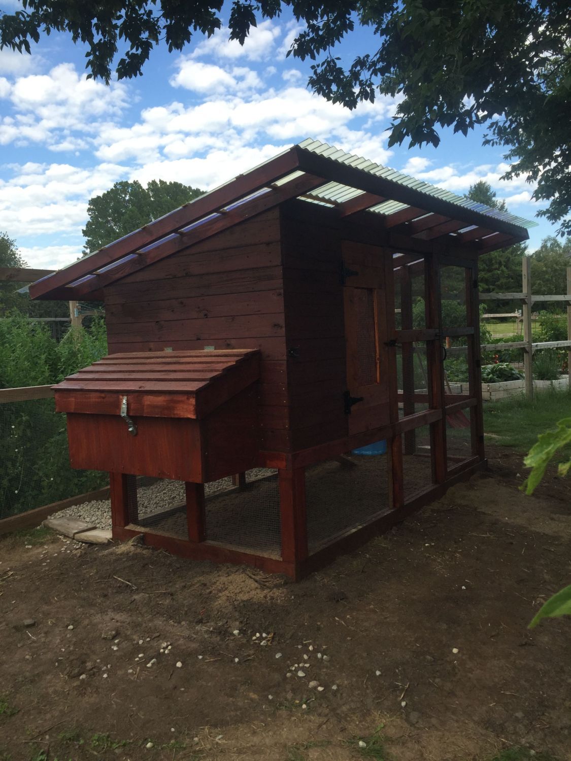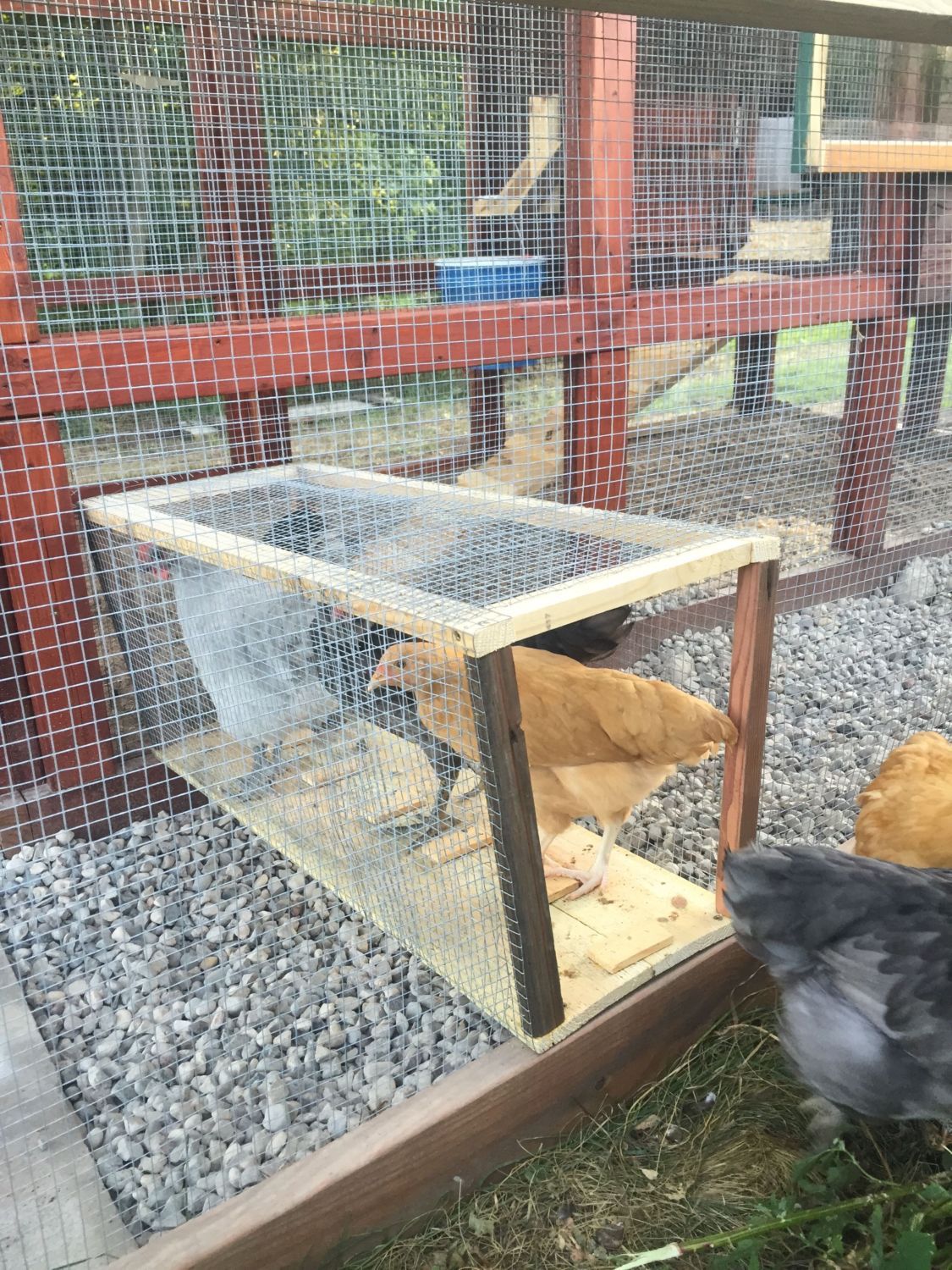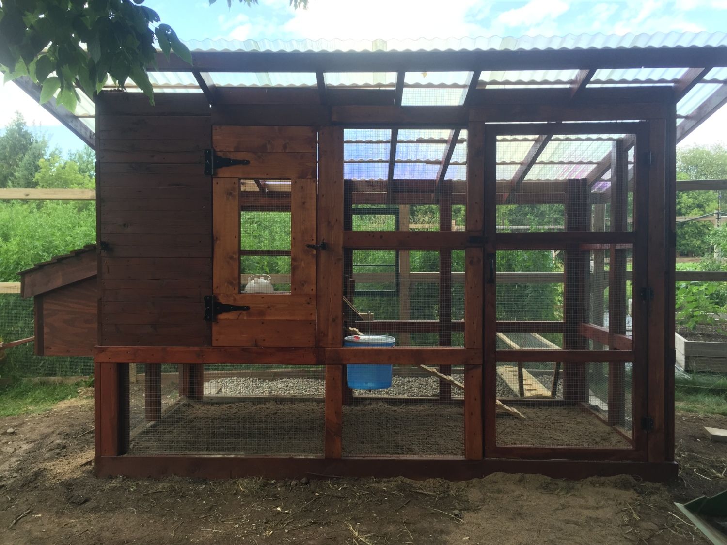 ). So we put the coop just outside the garden and I built a little covered bridge for them to get from the coop to the garden. When I reclaim that part of my garden next Spring, I'll add movable tunnels for between the rows of plants and put those chickens to work!