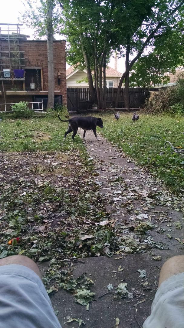 I had the chickens for about a month, had built a nice little coop with small run, and was letting them out in the double back yard daily.