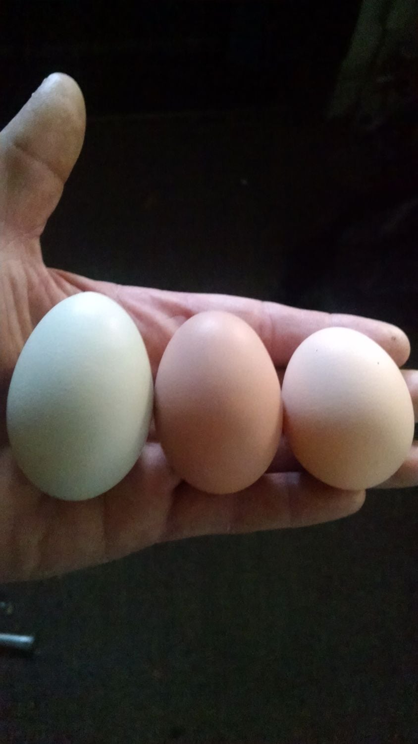 Three well developed eggs that I'm hoping will hatch any time now. They were put in the incubator as the were produced...