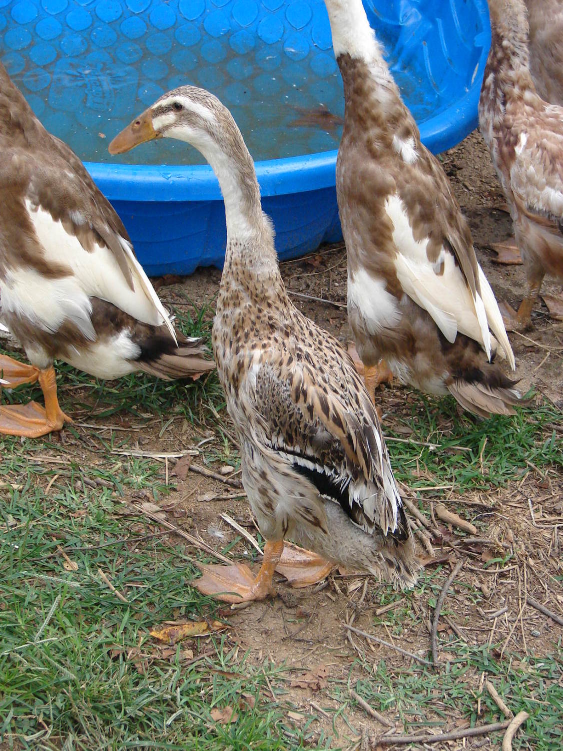 As I breed more of my duck, I will select for even more white on the bottom part. I understand that a very similar type of breeding has been done in call ducks. In that case, Saxony color (Trout with double Blue genes) has been bred to have more white. The Saxony-with-more-white is called Butterscotch.