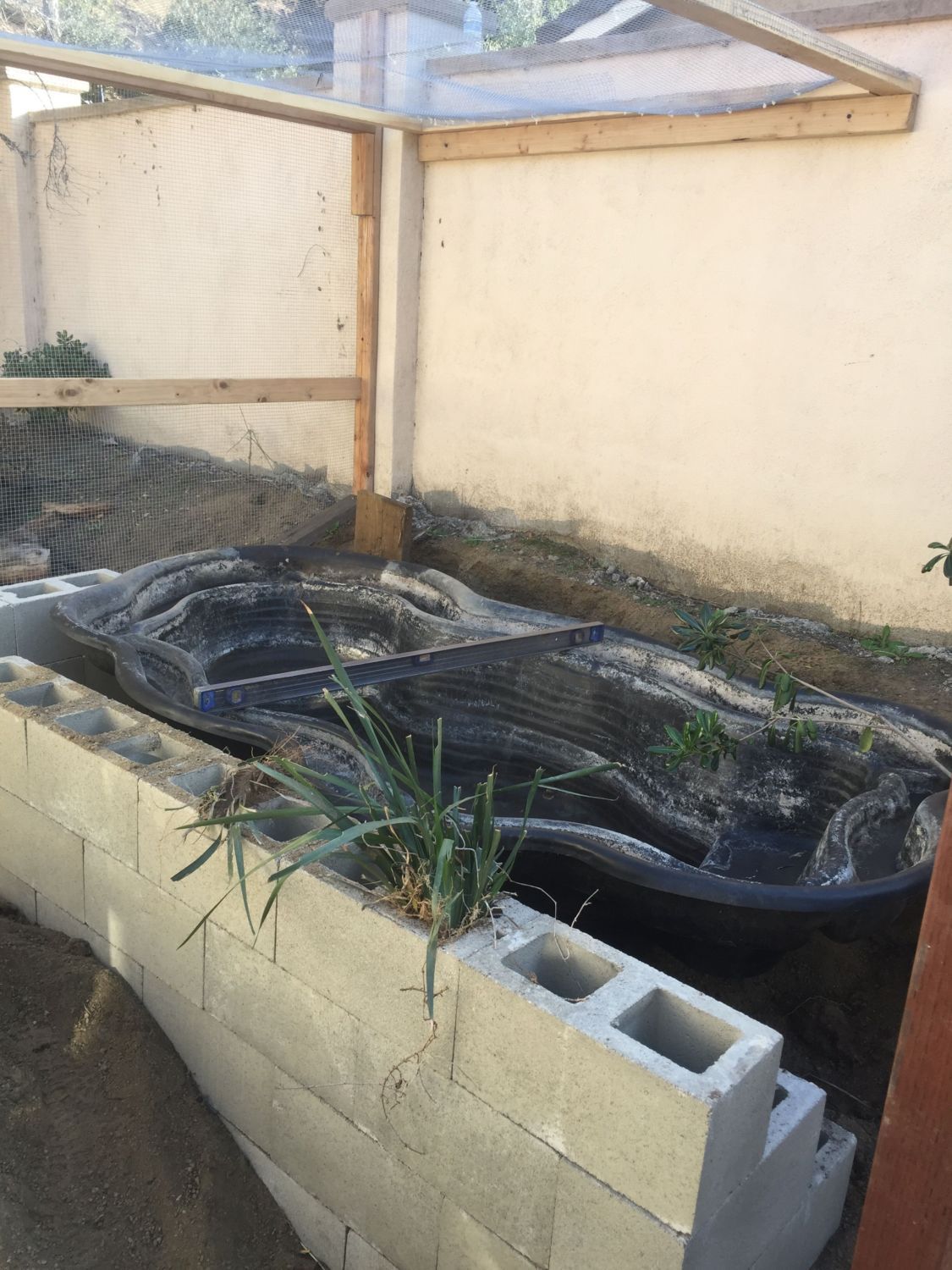 The new pond is 8x4 and is about 450 gallons. I was going to do a much bigger pond but I got this liner for next to nothing so it at least buys me some time if I want to do the full pond.