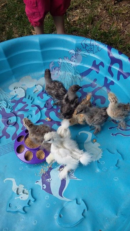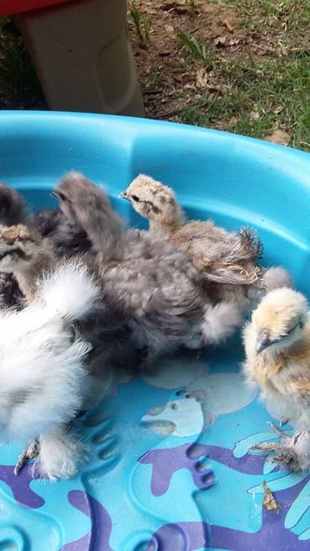 Hi all, my name is Jennifer Tucker, born and raised in Texas. Had tons of pets, farm animals growing up but only had dogs and cats along with 4 daughters since becoming an Adult.. I've since branched into goldfish, stupid things IMO.. And since we are big egg eaters I wanted chickens, so we got a couple Americana and one turkey that sadly won't make it past Thanksgiving. Anyhow that leads me up to about a month ago I ran across these pictures of Silkies.. and OMG I fell in love, found a lady that is local (well in Texas it was a 2 1/2 hr drive there and another 2 1/2 hr drive back). But I got myself 10 babies. 2 died within the first 4 days and I panicked educated myself about Corid and Cocci and medicated the whole batch including the Turkey and Americanas. All of them are better no more bloody poop. Feeding everyone medicated chick starter. I have 6 baby silkies that are 4 weeks old and 2 that are 6 weeks old. Assorted colors. 3 of them looked like a black or gray(blue) when they were first hatched. 3 of them looked exactly like the pics of partridge chicks ( however 2 are showing blue colorings now? maybe a blue partridge? and the third is a bright orange but still has the partridge markings). I'll attach pics I've taken over the weeks. I'm open to tips and would love any advice or links to help for me be successful at raising the cute little bundles of personality.