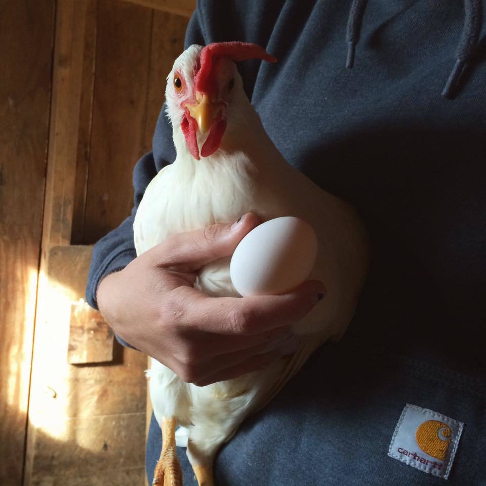 Nyra - White Leghorn (This picture was taken a two days ago when she laid her first egg!).