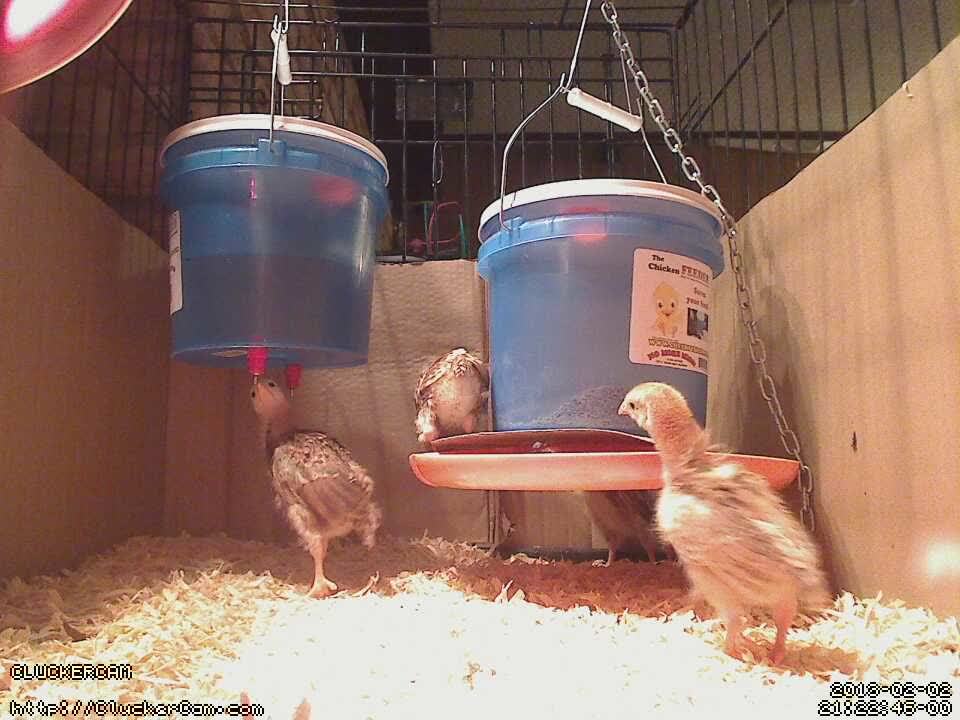 Also, being the geek that I am, I figured friends and family may want to see the chicks as they grow. I set up a streaming webcam which is visible at http://cluckercam.com. Who doesn't like to watch chicks on a webcam?