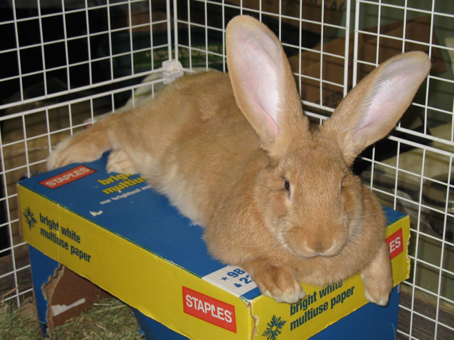 We used to keep our Flemish Giant in that cage. His dreadful potty habits precluded him from being in the house full time.