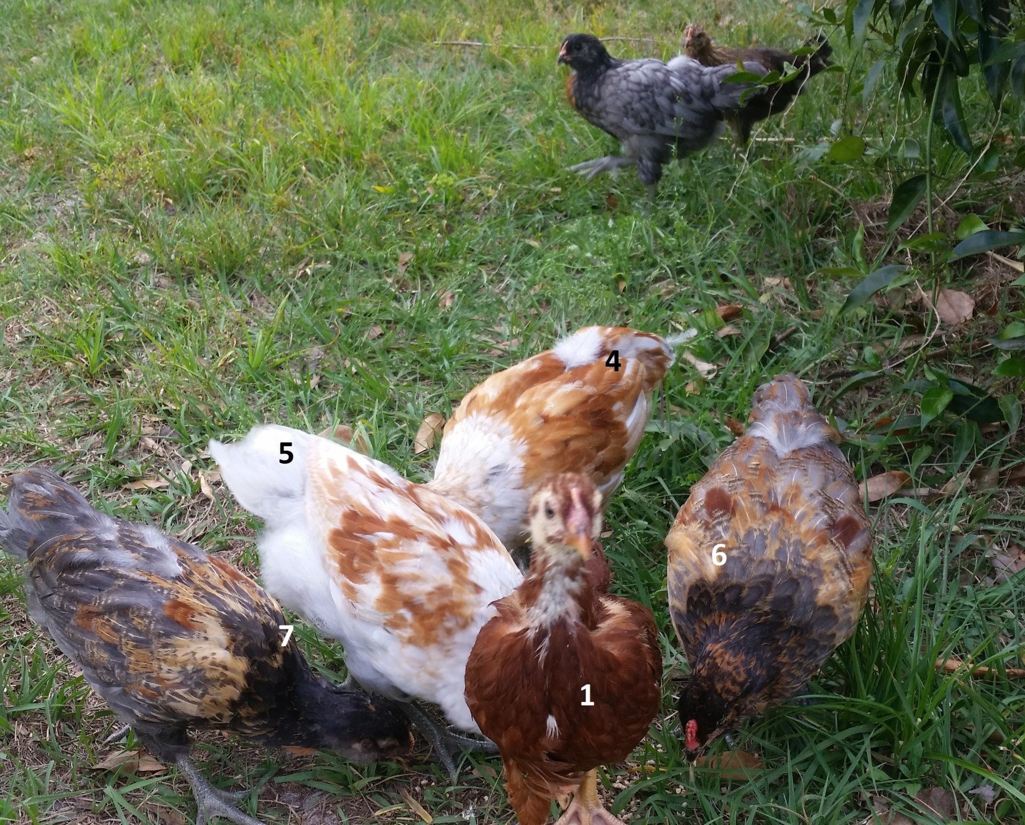 I have a flock of 7 chickens, they are 7 weeks old. I know a few are easter eggers, one I think is a RIR and the two white ones I'm not sure about. I've been researching but somehow they all seem to look like roos to me. Can anyone spot pullets amongst these guys? Just seeing if I'm on the right track. Thanks!