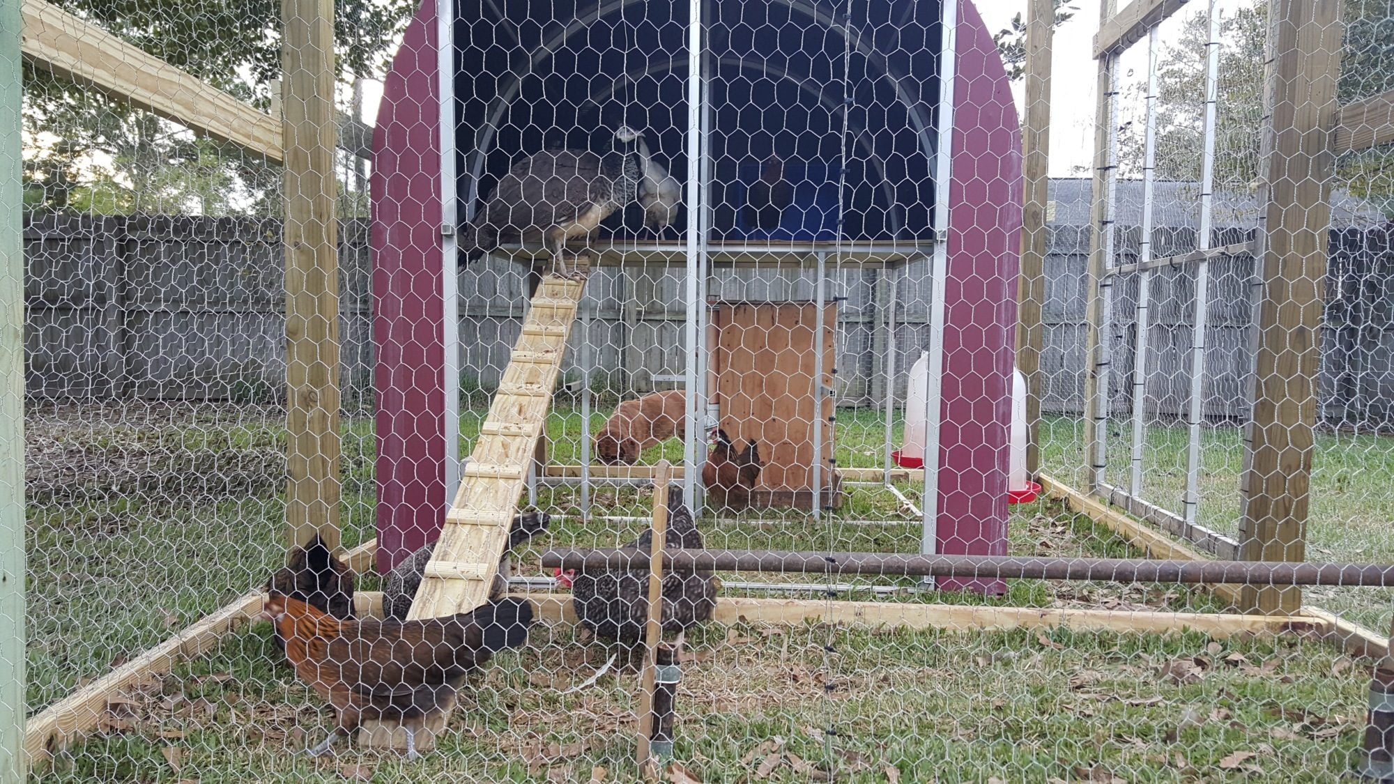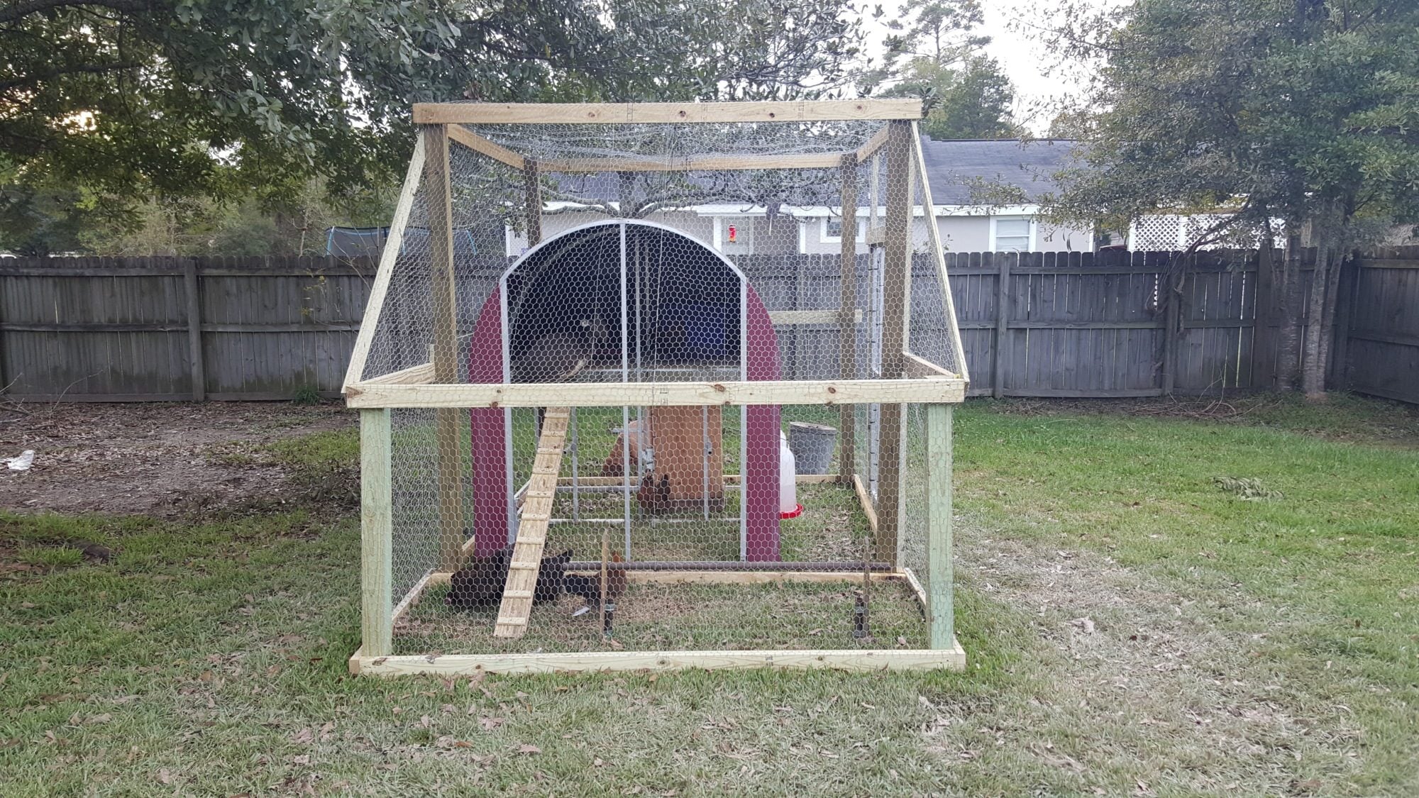 I am very new to owning chickens, but my stepdad moved and had to give his up, so I threw together a coop, using some of the resources I had. Because I am new to owning chickens, I am curious as to advice to make sure my chickens are okay. We live outside of Baton Rouge, LA, so it is definitely hot and humid down here. Also, this means that since it rains a lot, it can be hard to keep my coop/run dry. The entire coop/run is 8'x12'. Some of my concerns are what type of bedding would work best for this, what are some ways to make sure they don't overheat, and how many chickens could this coop hold. I'll attach some pictures, and any help would be greatly appreciated. Thanks!