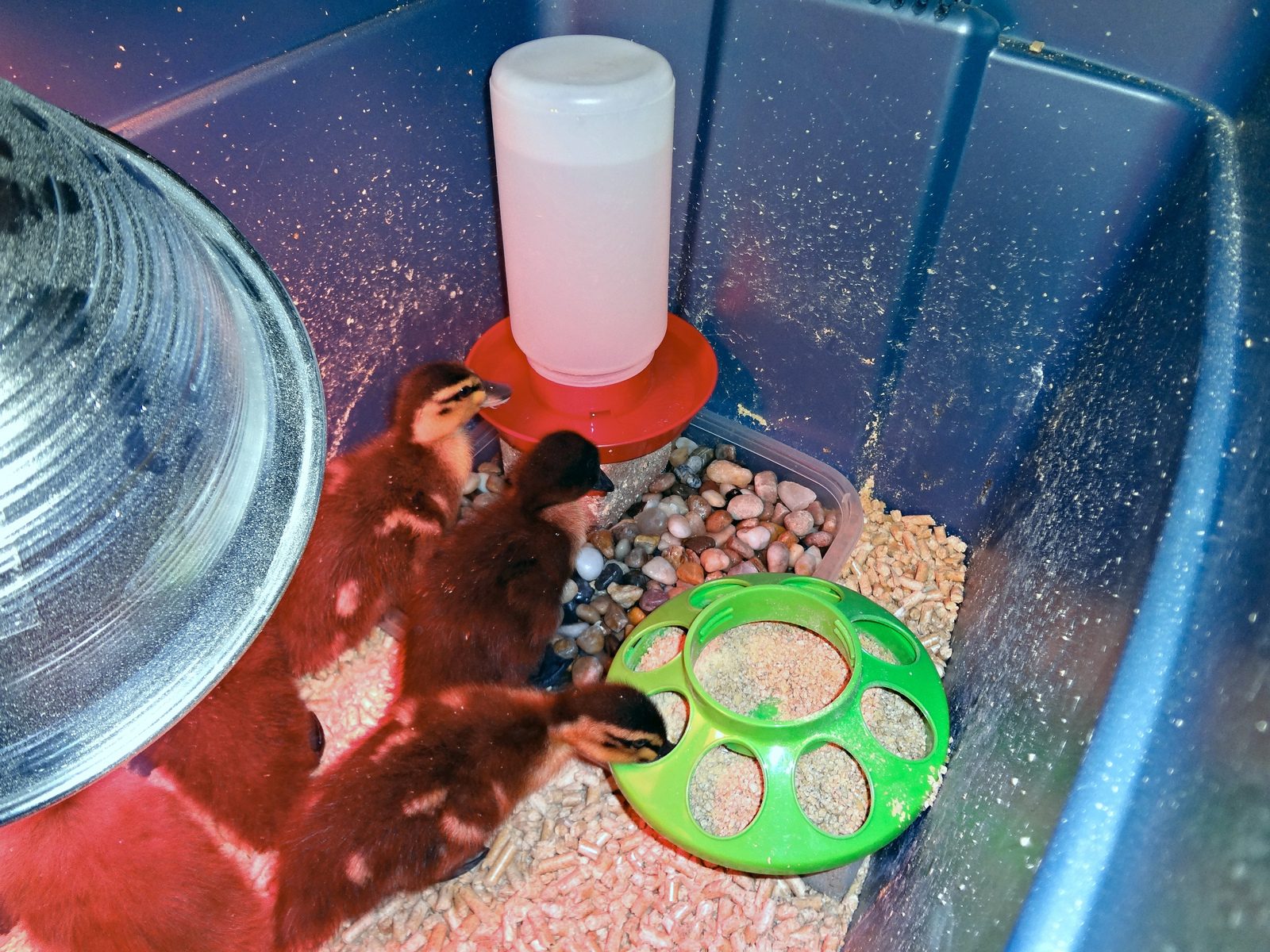 The little duckies are growing at a nice rate. I had to upgrade their "house" from the 20 gal tote to a 35 gal one. Hopefully that'll last them another week or so