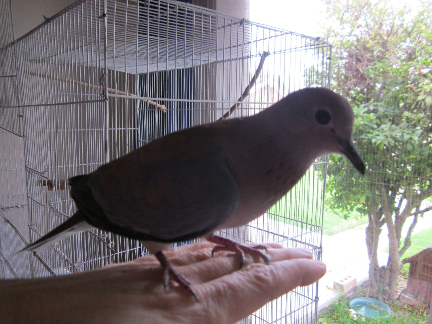 I've hand reared a mourning dove, Boyd, which unfortunately imprinted and is a permanent resident in my home. I would have loved to released him, but he thinks I'm his mate and bobs and coos whenever he sees me. I tried introducing other rescued birds to him, but he attacks them